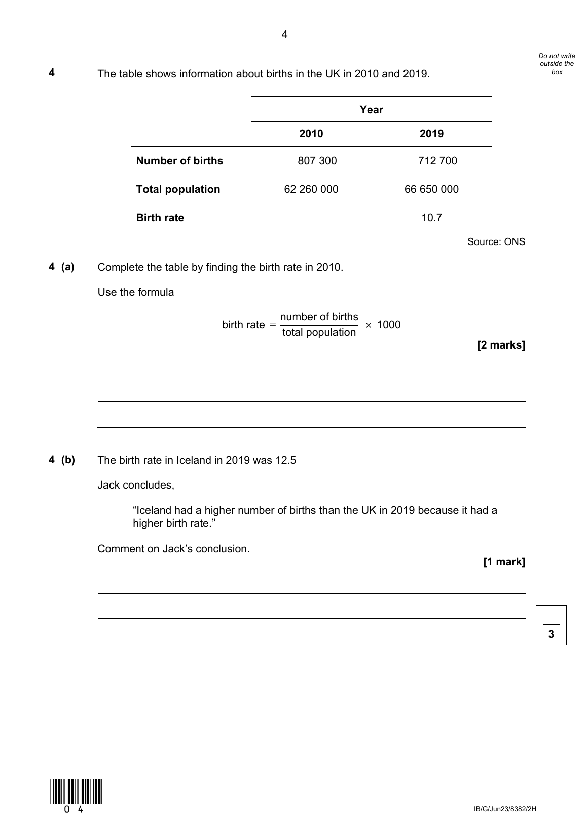 2023 AQA GCSE STATISTICS QUESTION PAPER 2 - HIGHER TIER (8382/2H)