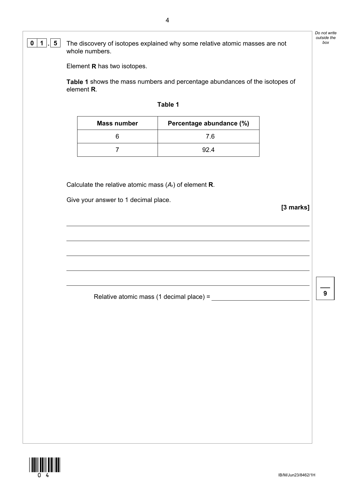 2023 AQA GCSE CHEMISTRY (TRIPLE SCIENCE) QUESTION PAPER 1 - HIGHER TIER (8462/1H)