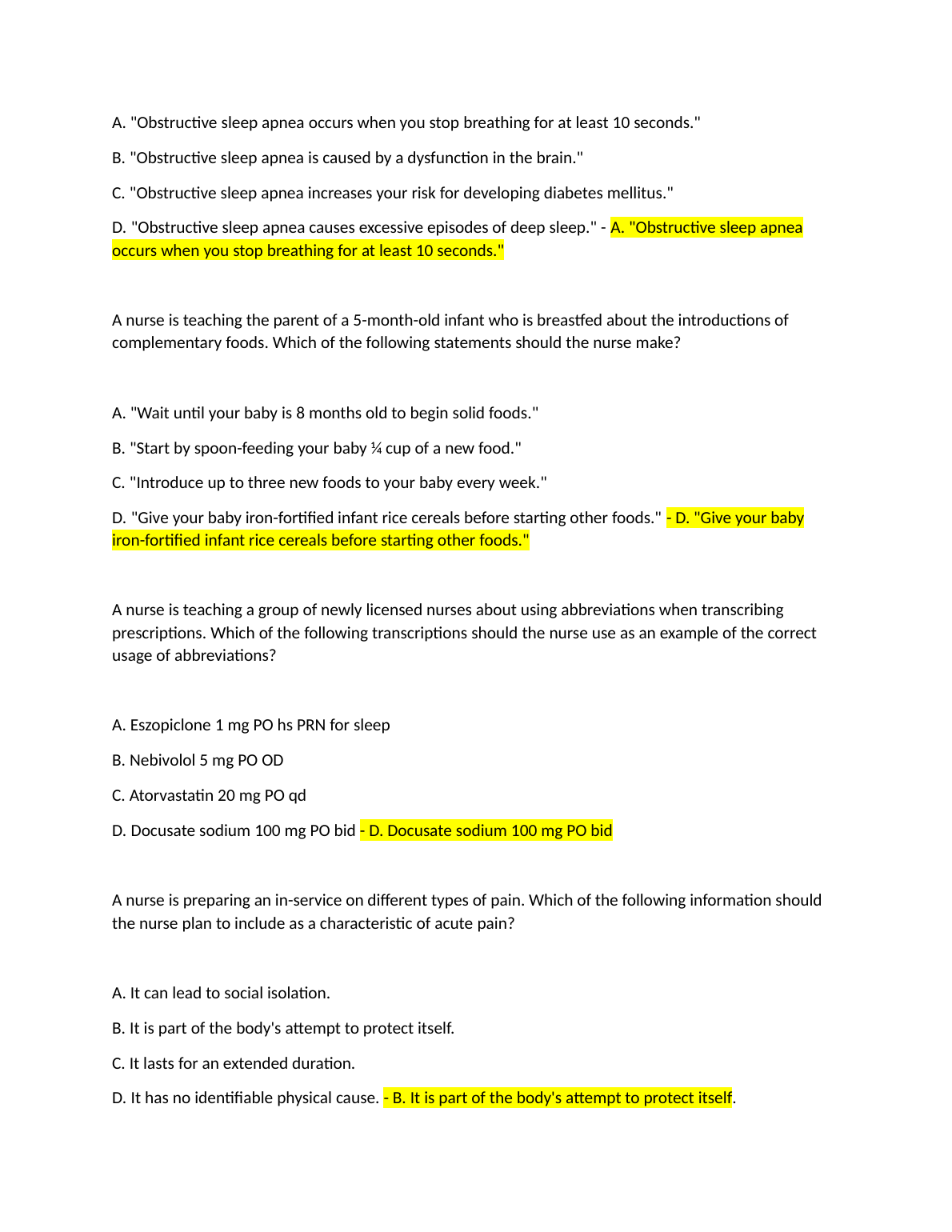 ATI RN CONCEPT BASED ASSESSMENT LEVEL 1 B 100 QUESTIONS WITH 100% CORRECT ANSWERS