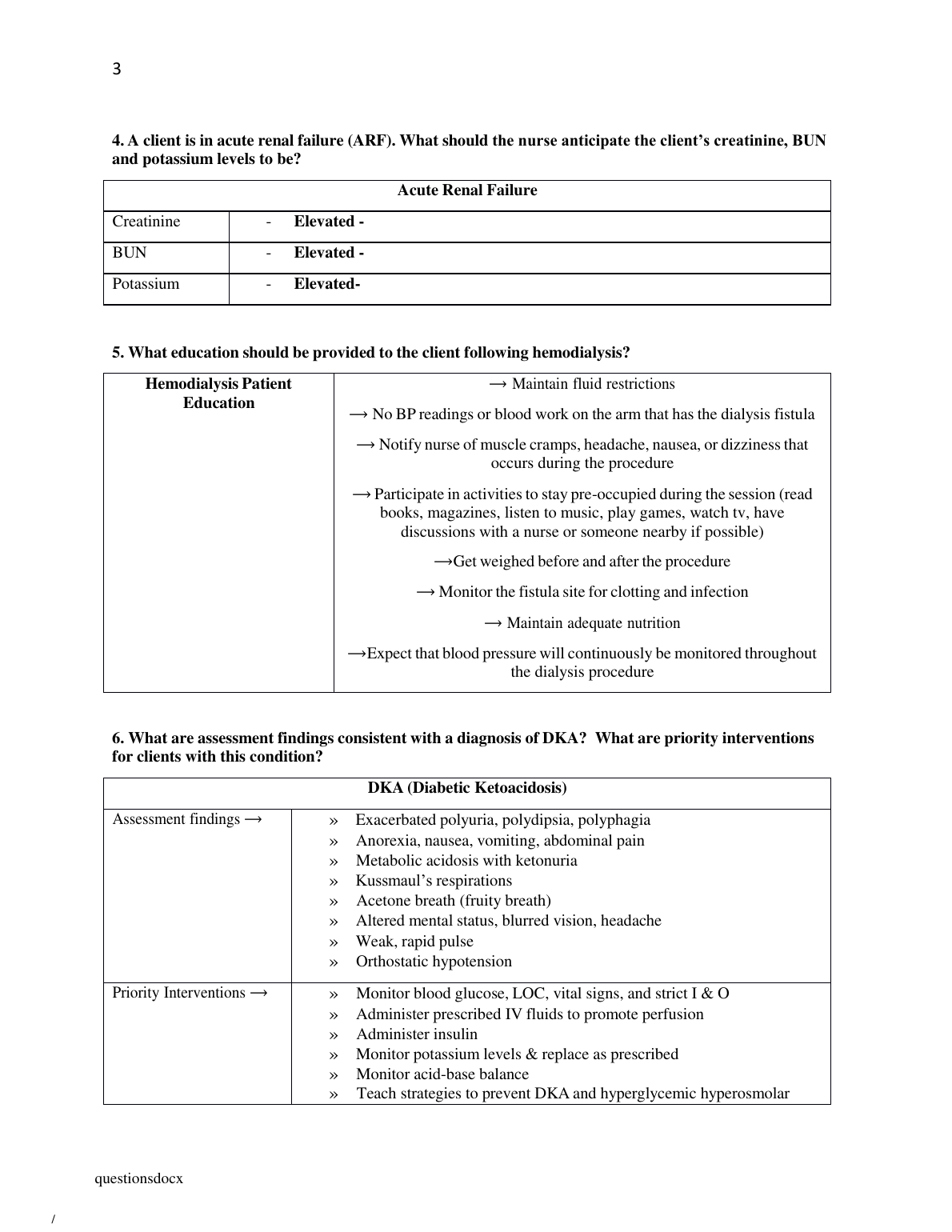 1. What are the manifestations of hypokalemia? Hyperkalemia?