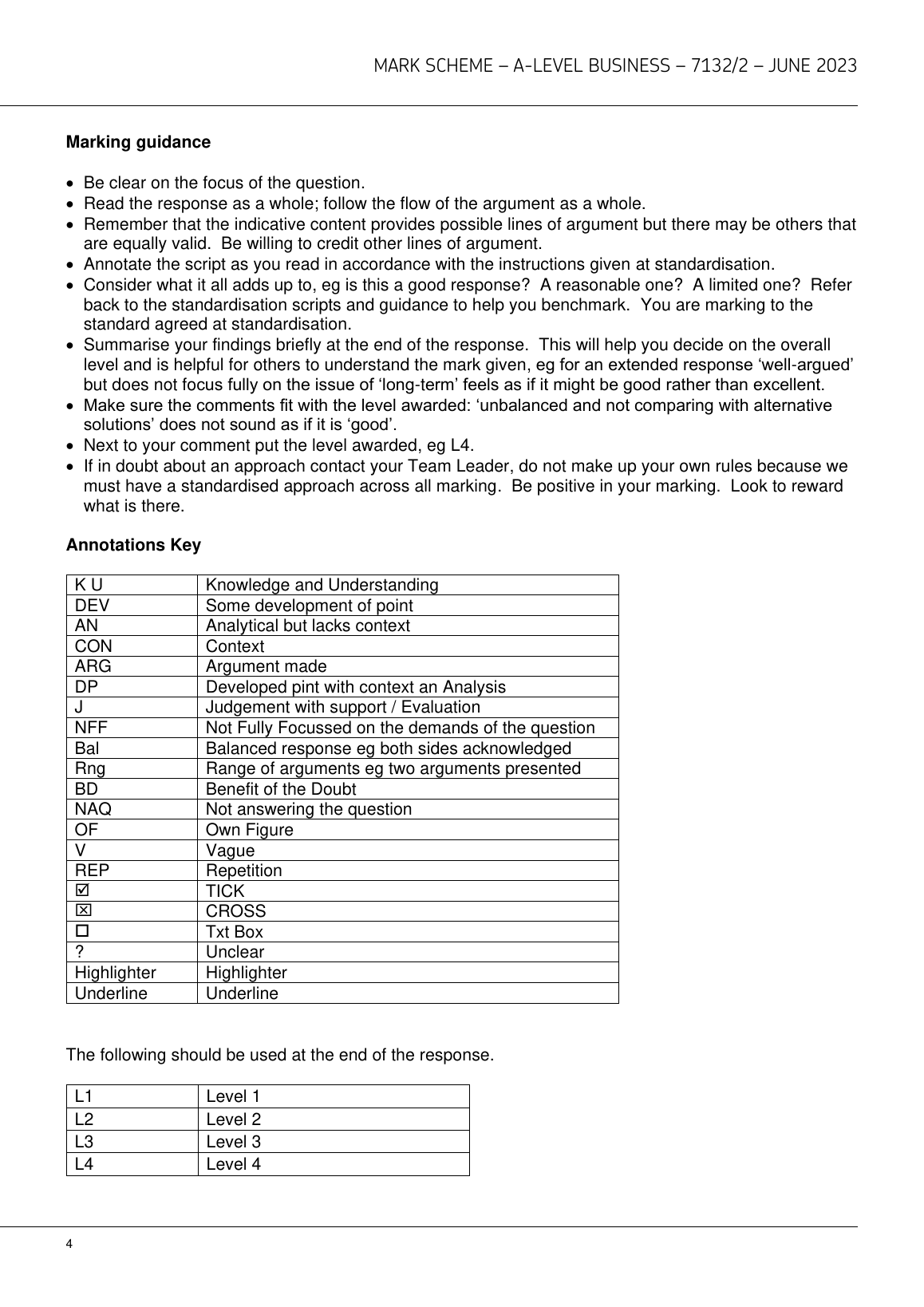 AQA A LEVEL BUSINESS PAPER 2 MARK SCHEME 2023 (7132/2:)