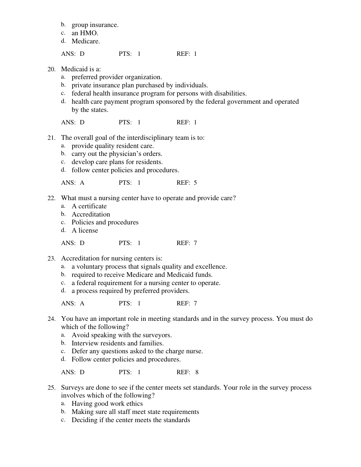 Test Bank for Kostelnick: Mosby’s Textbook for Long-Term Care Nursing Assistants, 8th Edition. DOWNLOAD on www.leakedexams.com INSTANTLY.