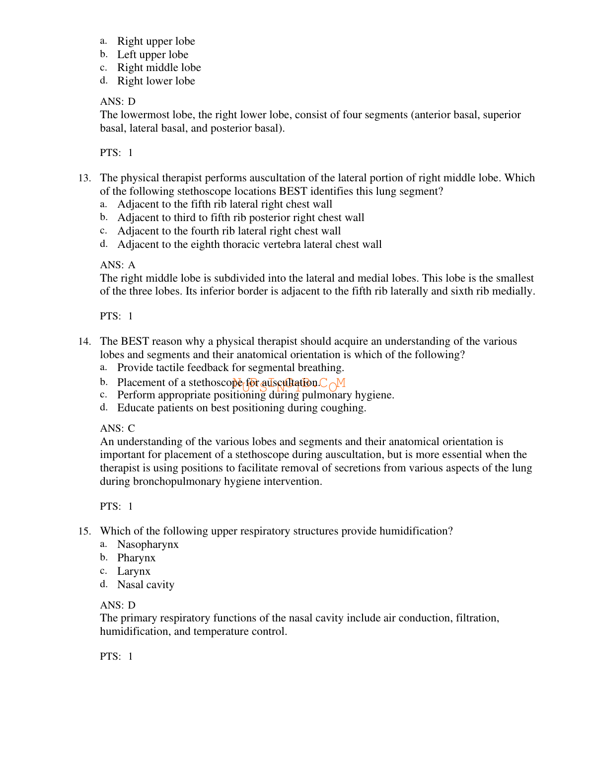 Essentials of Cardiopulmonary Physical Therapy 4th Edition Hillegass Test Bank