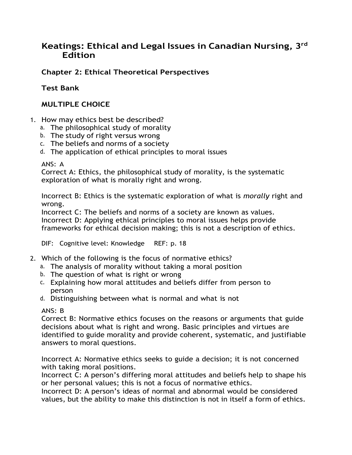 Ethical & Legal Issues in Canadian Nursing 3rd Edition Test Bank