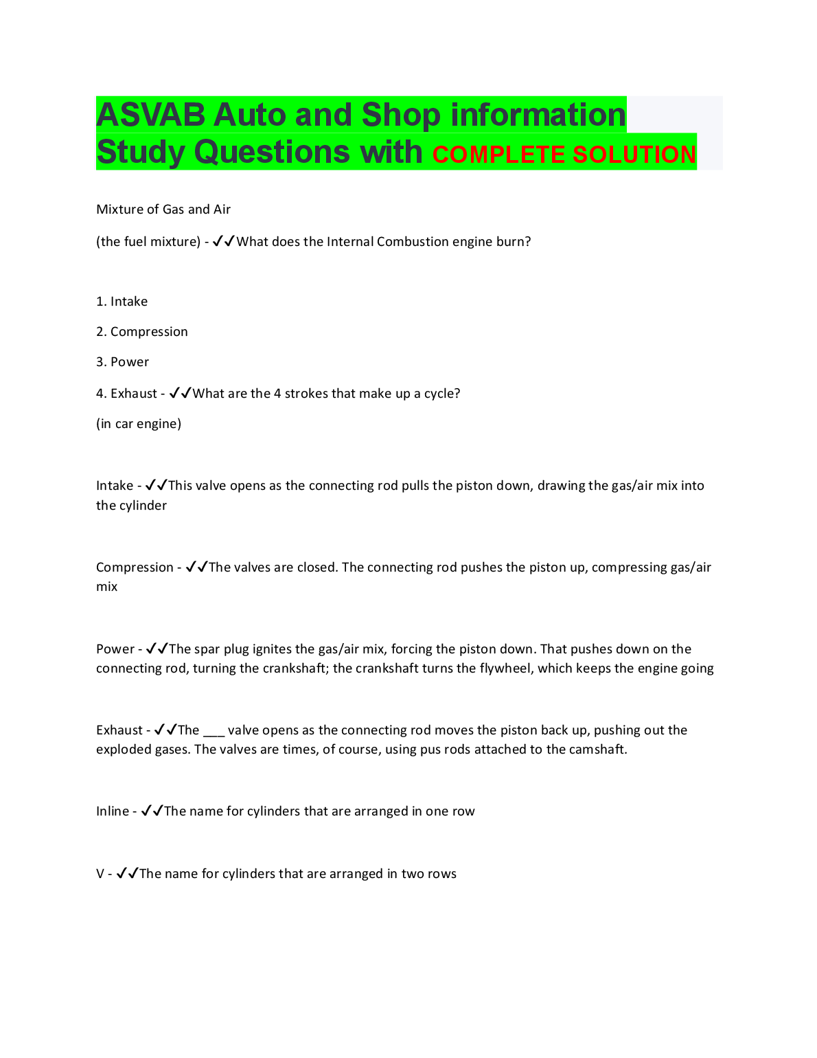 ASVAB AUTO AND SHOP INFORMATION STUDY QUESTION WITH COMPLETE SOLUTION 2024