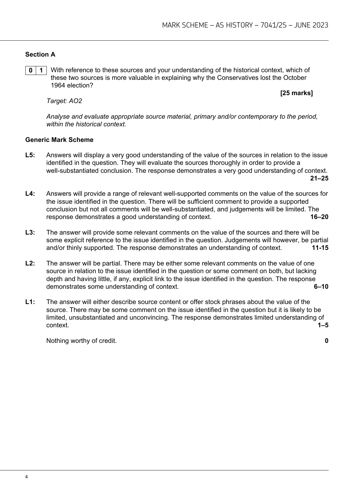 AQA AS HISTORY MARK SCHEME PAPER 2S 2023 [7041/2S]