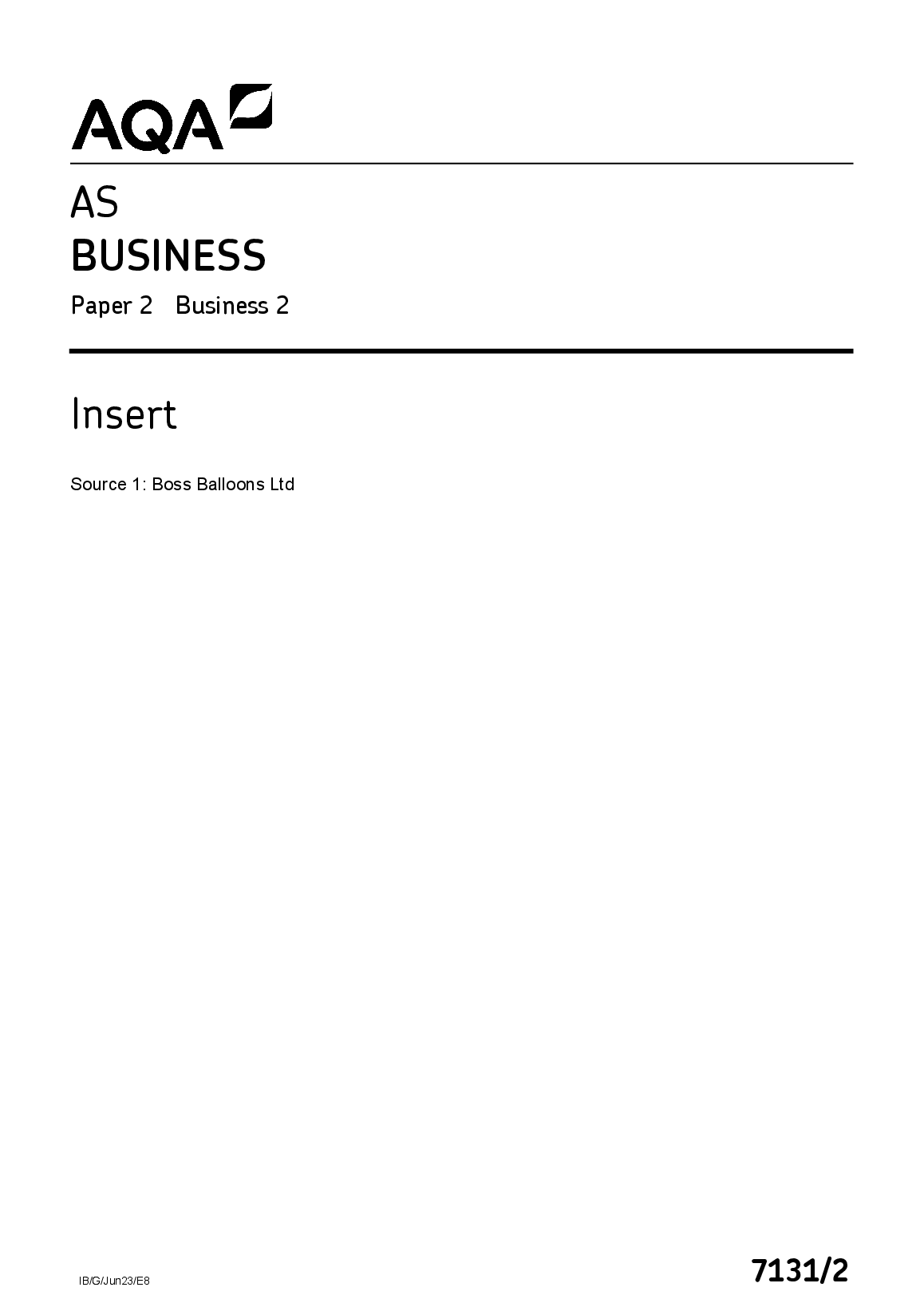 2023 AQA AS BUSINESS PAPER 2 INSERT (7131/2: Business 2).