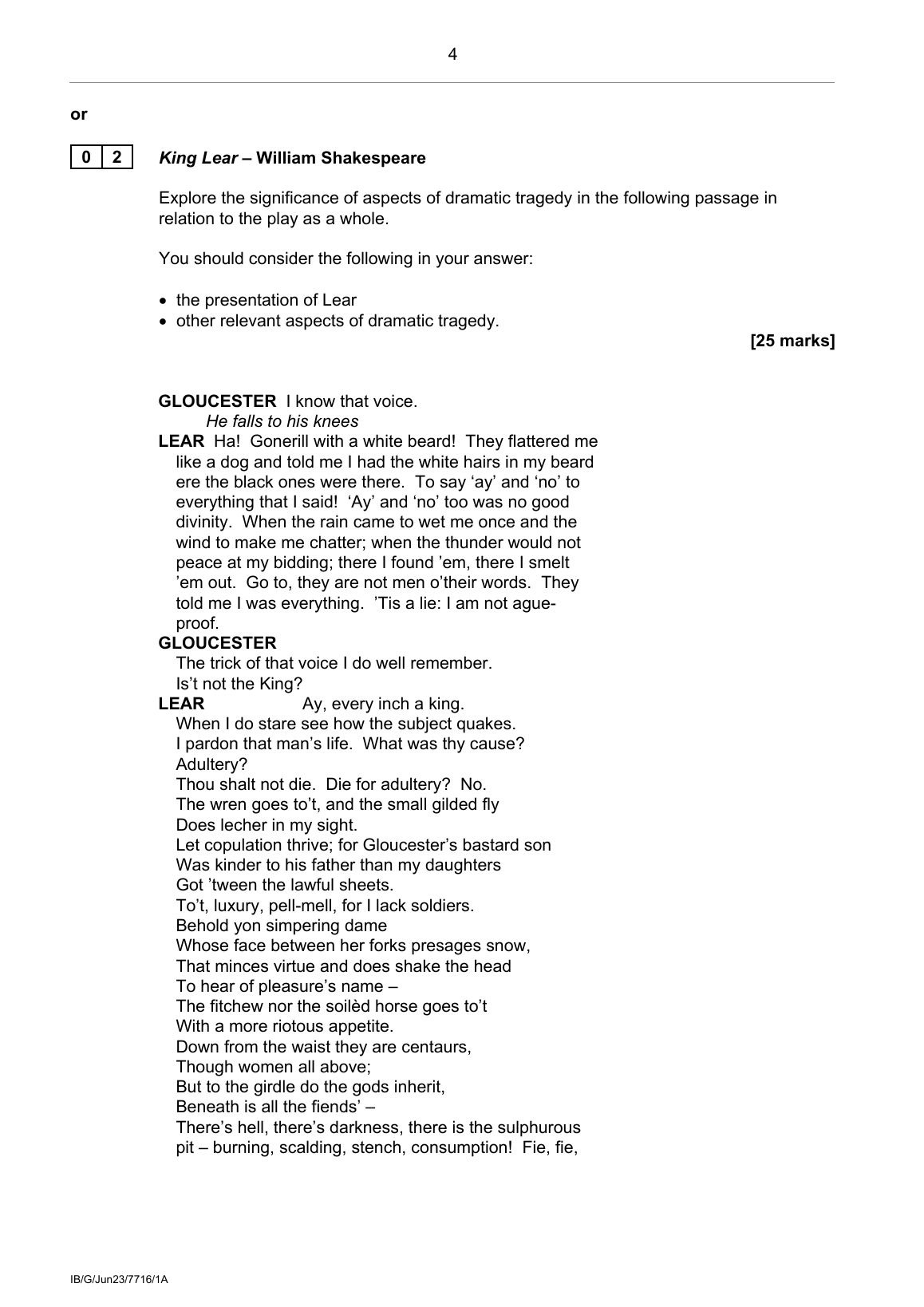 2023 AQA AS ENGLISH LITERATURE B PAPER 1A QUESTION PAPER (7716/1B: Literary genres: Drama: Aspects of tragedy).