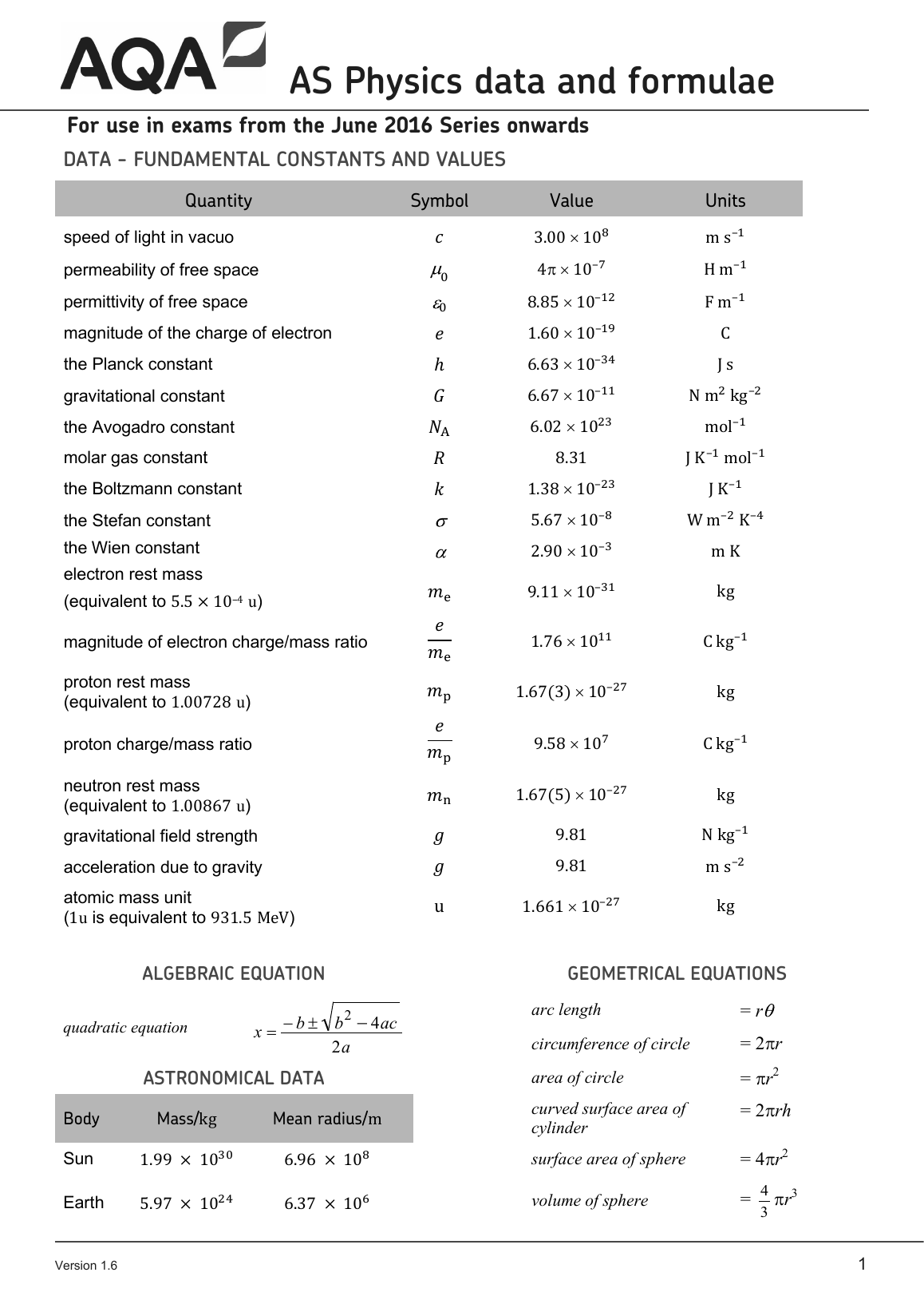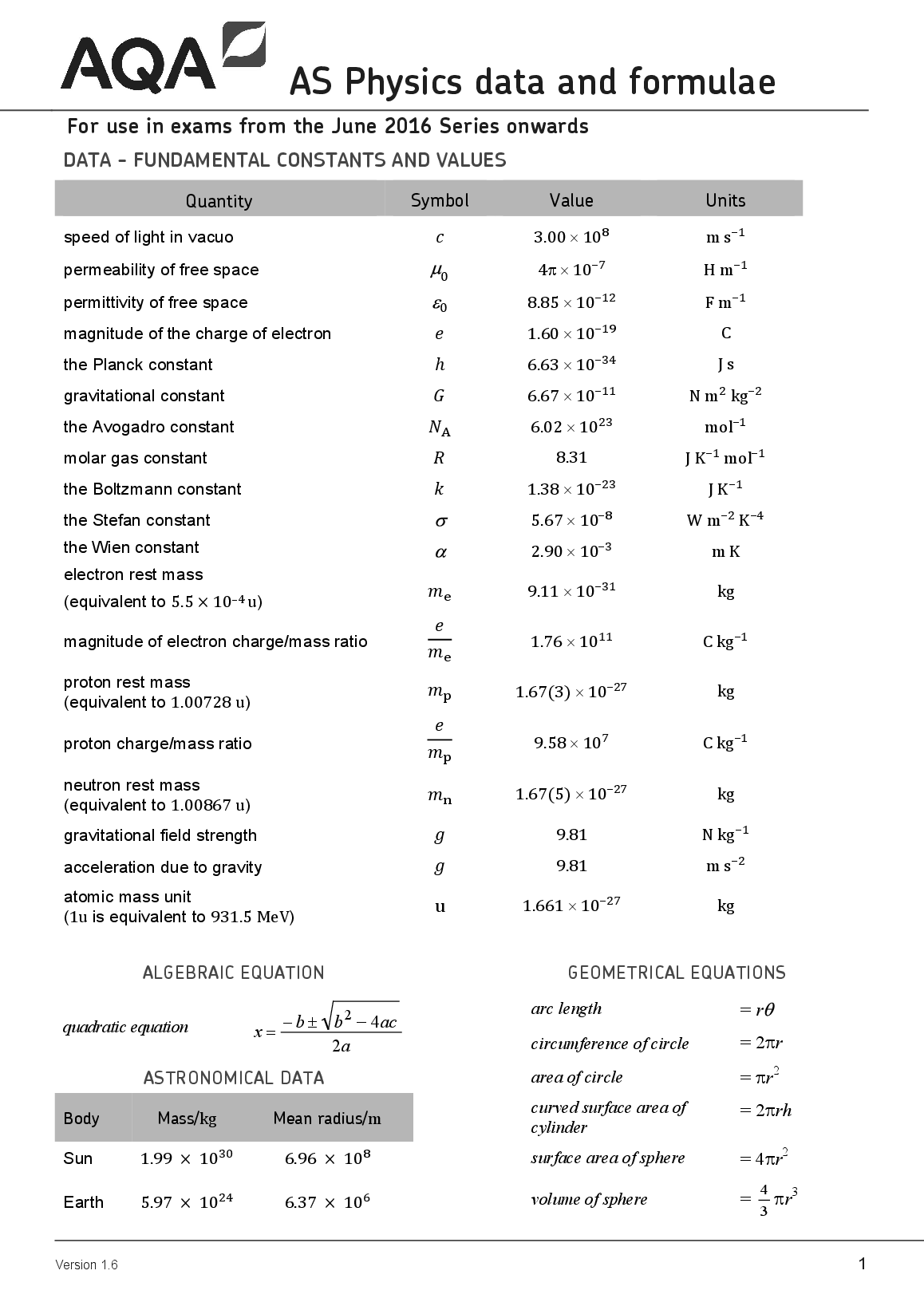 2023 AQA AS PHYSICS PAPER 2 INSERT (7407/2).
