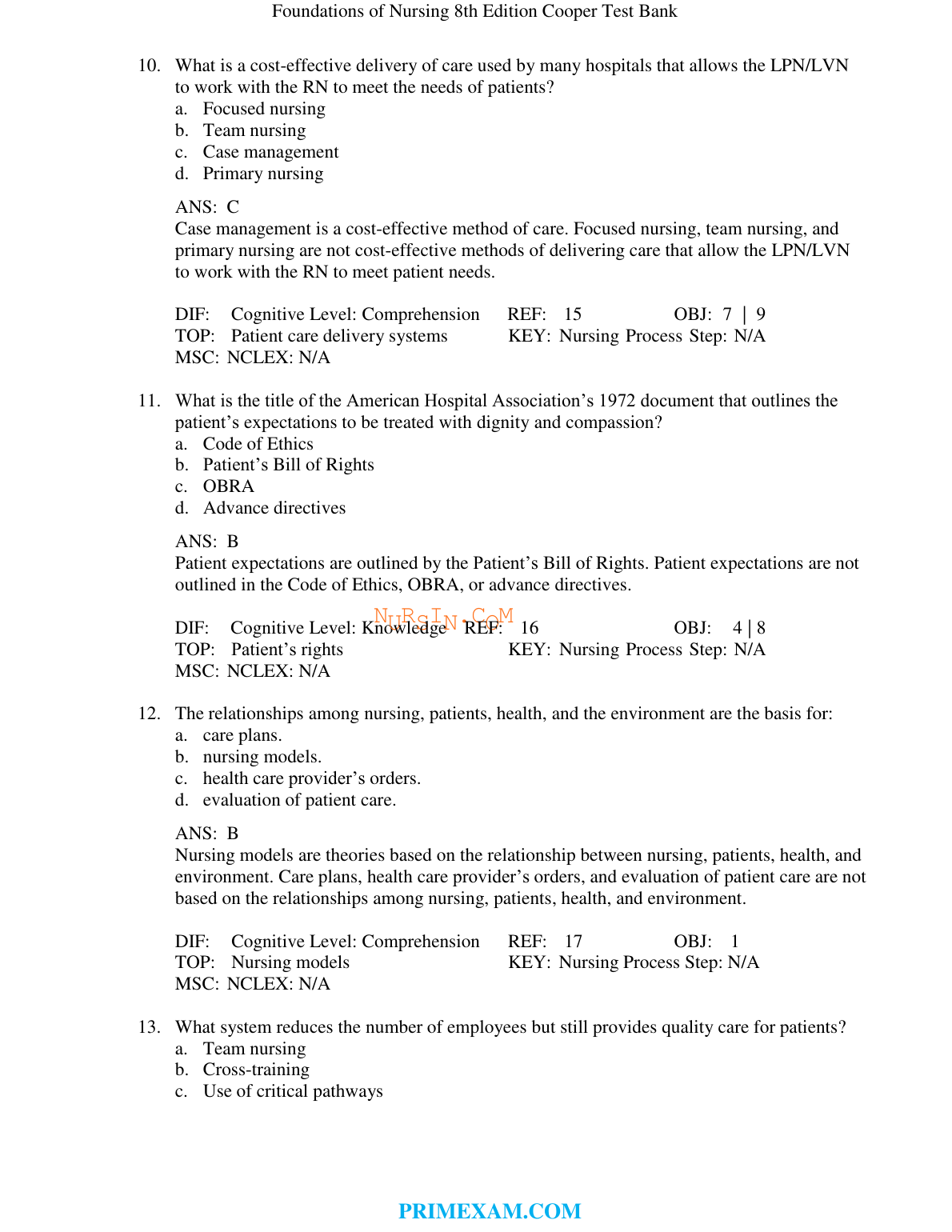TEST BANK: Foundations of Nursing, 8th Edition BY Cooper