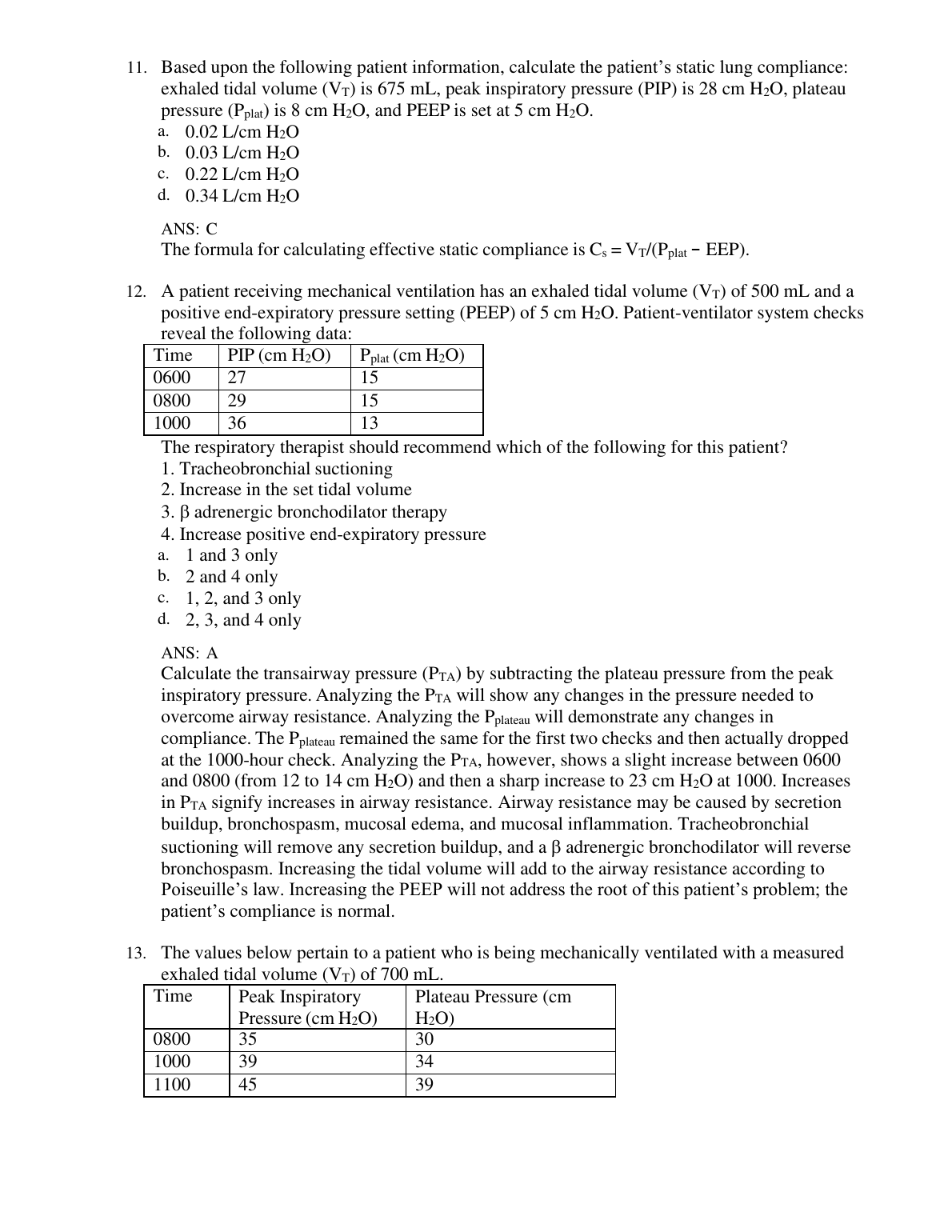 Mechanical Ventilation 7th Edition Cairo Test Bank