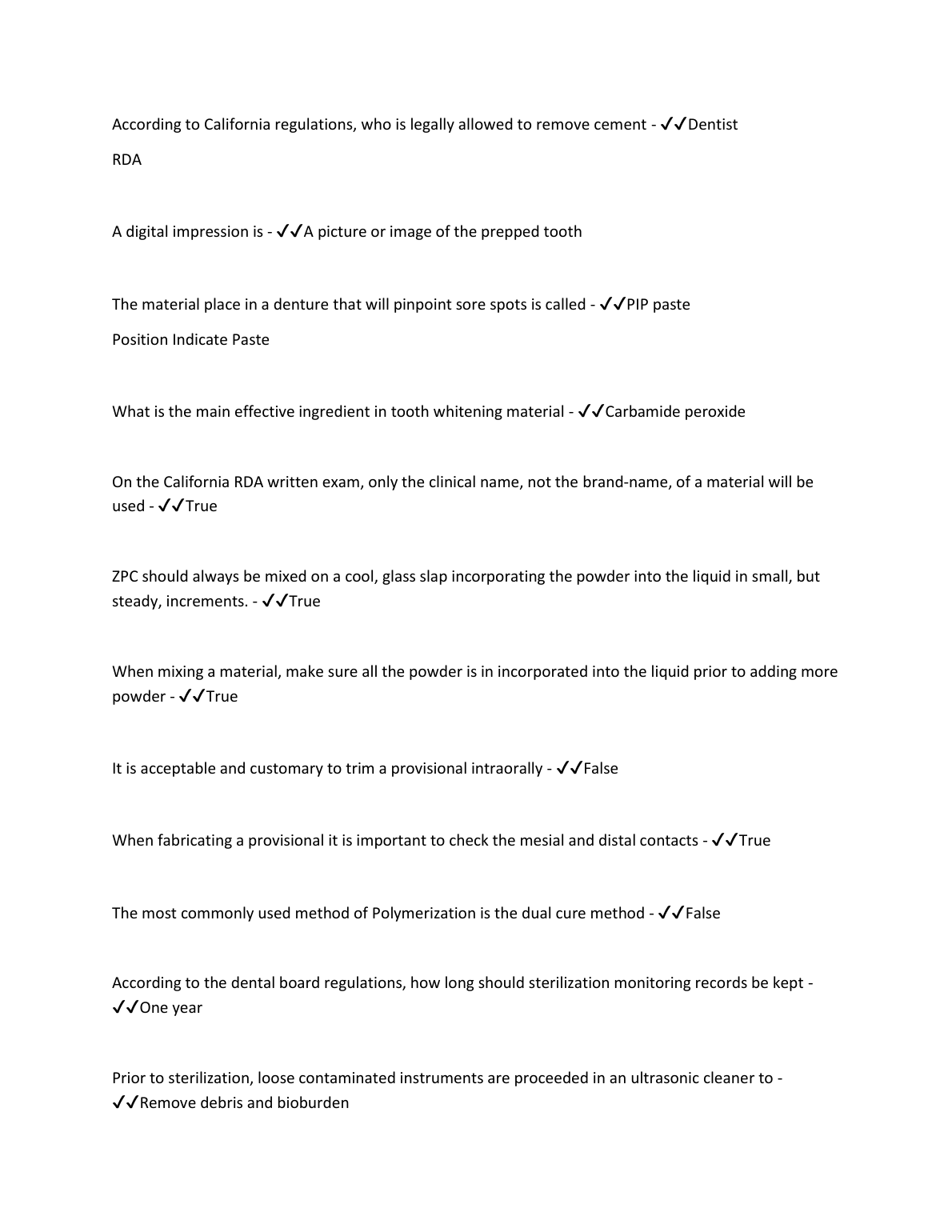 California RDA Written Exam Pre Test Bank (211 Questions with 100% CORRECT ANSWERS 2024