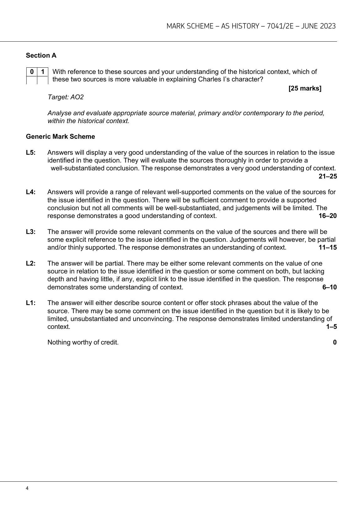 2023 AQA AS HISTORY MARK SCHEME PAPER 2E(7041/E;THE ENGLISH REVOLUTION:THE ORIGIONS OF THE ENGLISH CIVIL WAR).