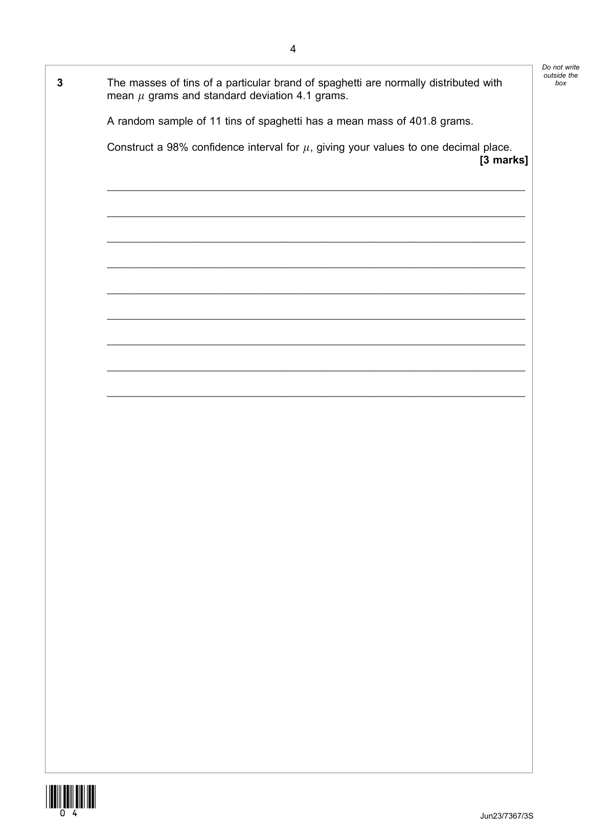 AQA A LEVEL FURTHER MATHEMATICS PAPER 3S QUESTION PAPER 2023 (7367/3S: Statistics)