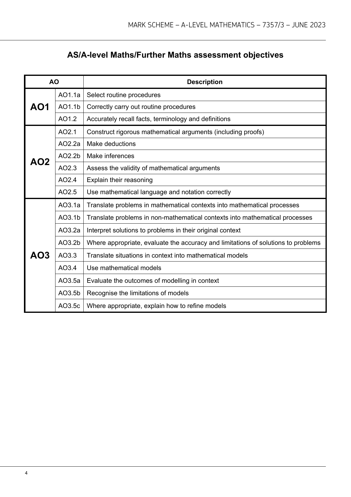 AQA A LEVEL MATHEMATICS PAPER 3 MARK SCHEME (7357/3)