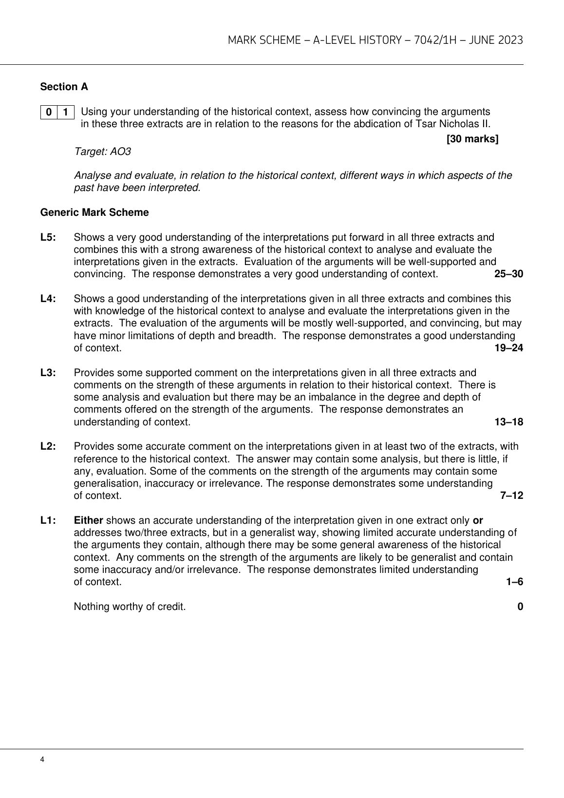 2023 AQA A LEVEL HISTORY MARK SCHEME PAPER 1H(7042/1H;TSARIST AND COMMUNIST RUSSIA).