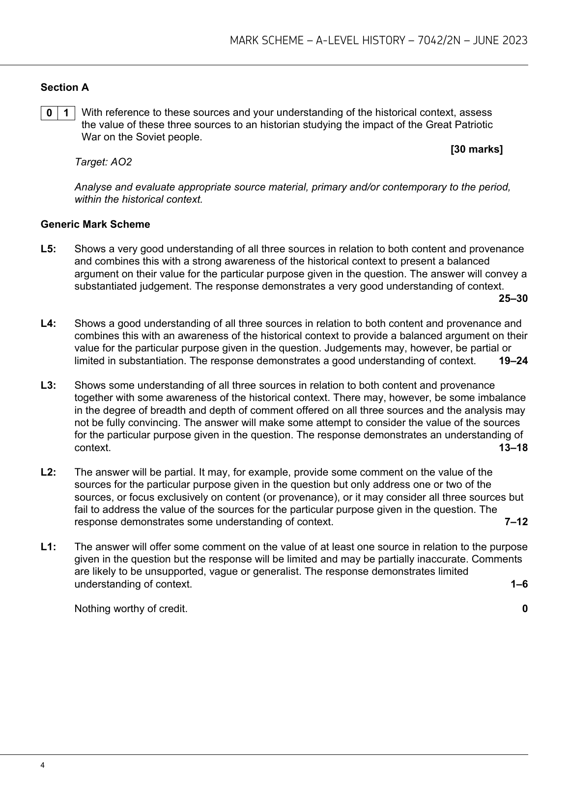 2023 AQA A LEVEL HISTORY MARK SCHEME PAPER 2N(7042/2N;REVOLUTION AND DICTATORSHIP :RUSSIA).