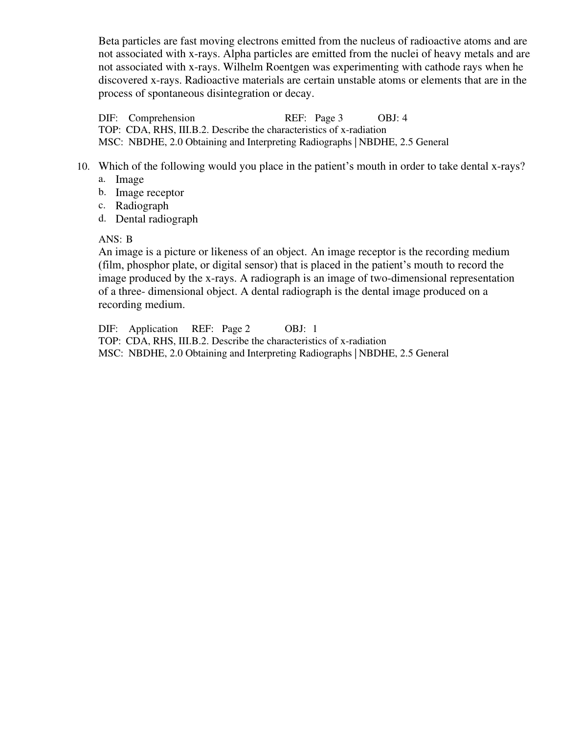 TOP: CDA, RHS, III.B.2. Describe the characteristics of x-radiation