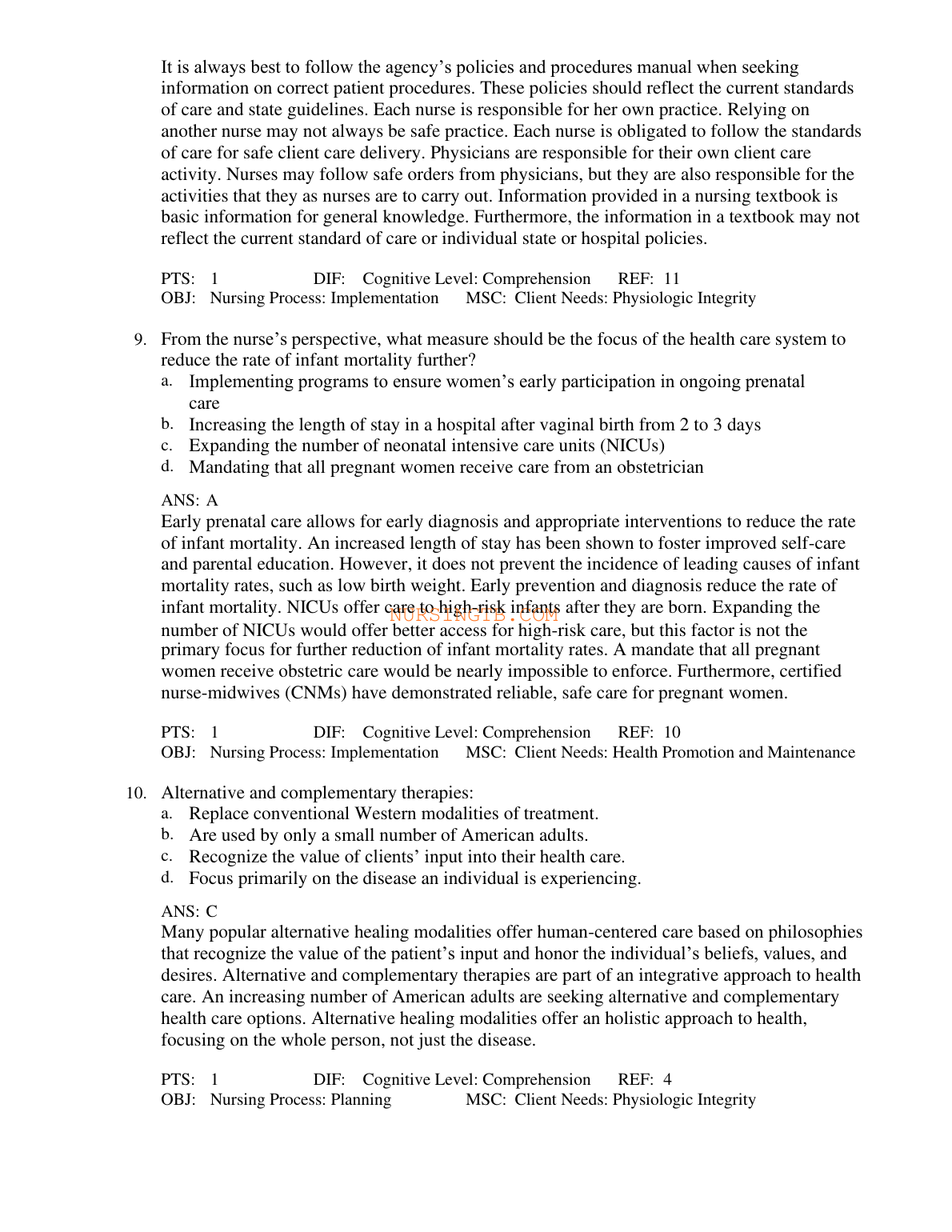 2. To ensure optimal outcomes for the patient, the contemporary maternity nurse must