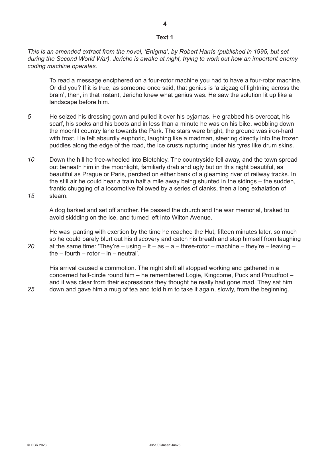 OCR GCSE ENGLISH LANGUAGE INSERT PAPER 2 2023 (J351/02)