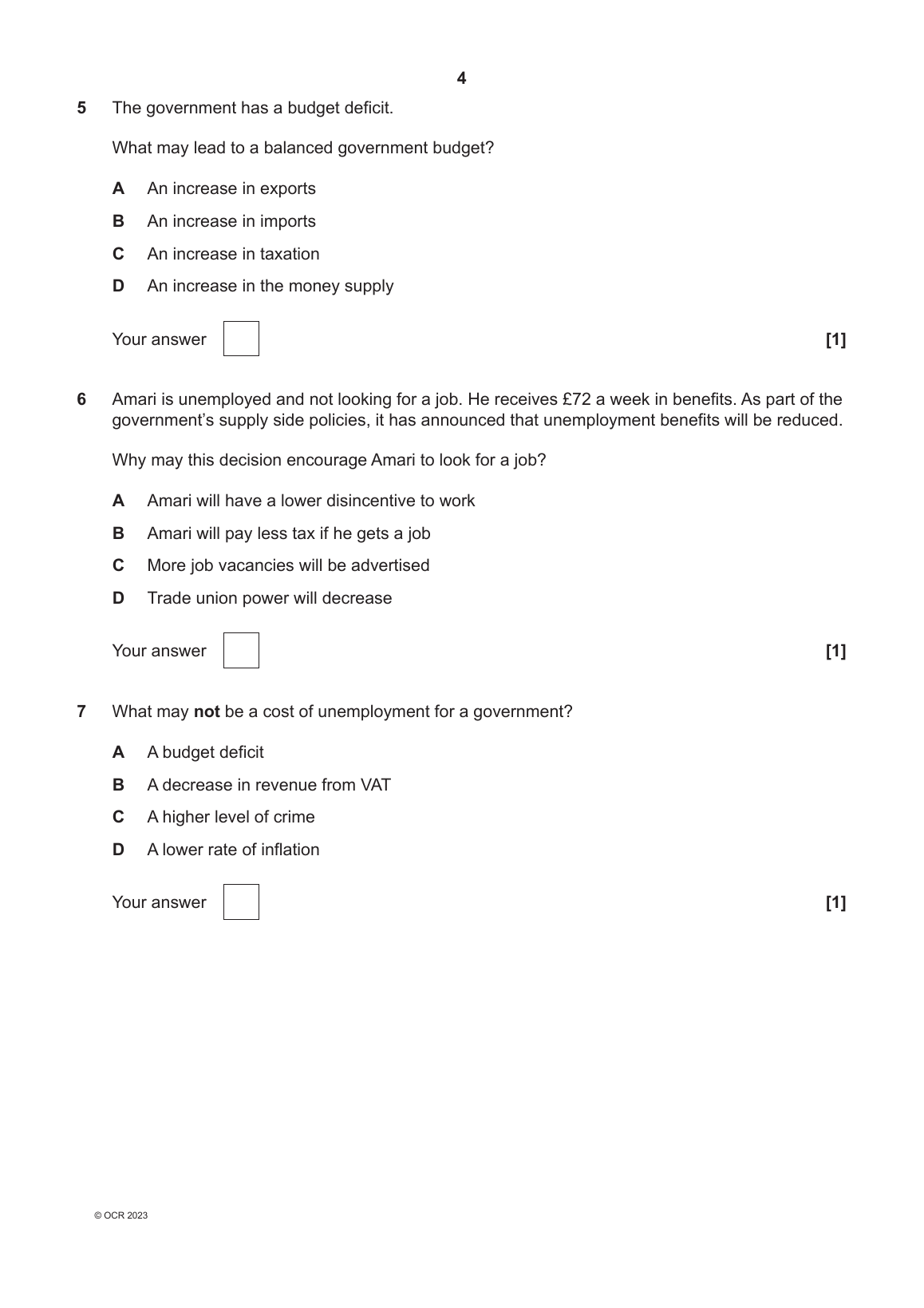 OCR GCSE ECONOMICS QUESTION PAPER 2 2023 (J205/02: National and International Economics)