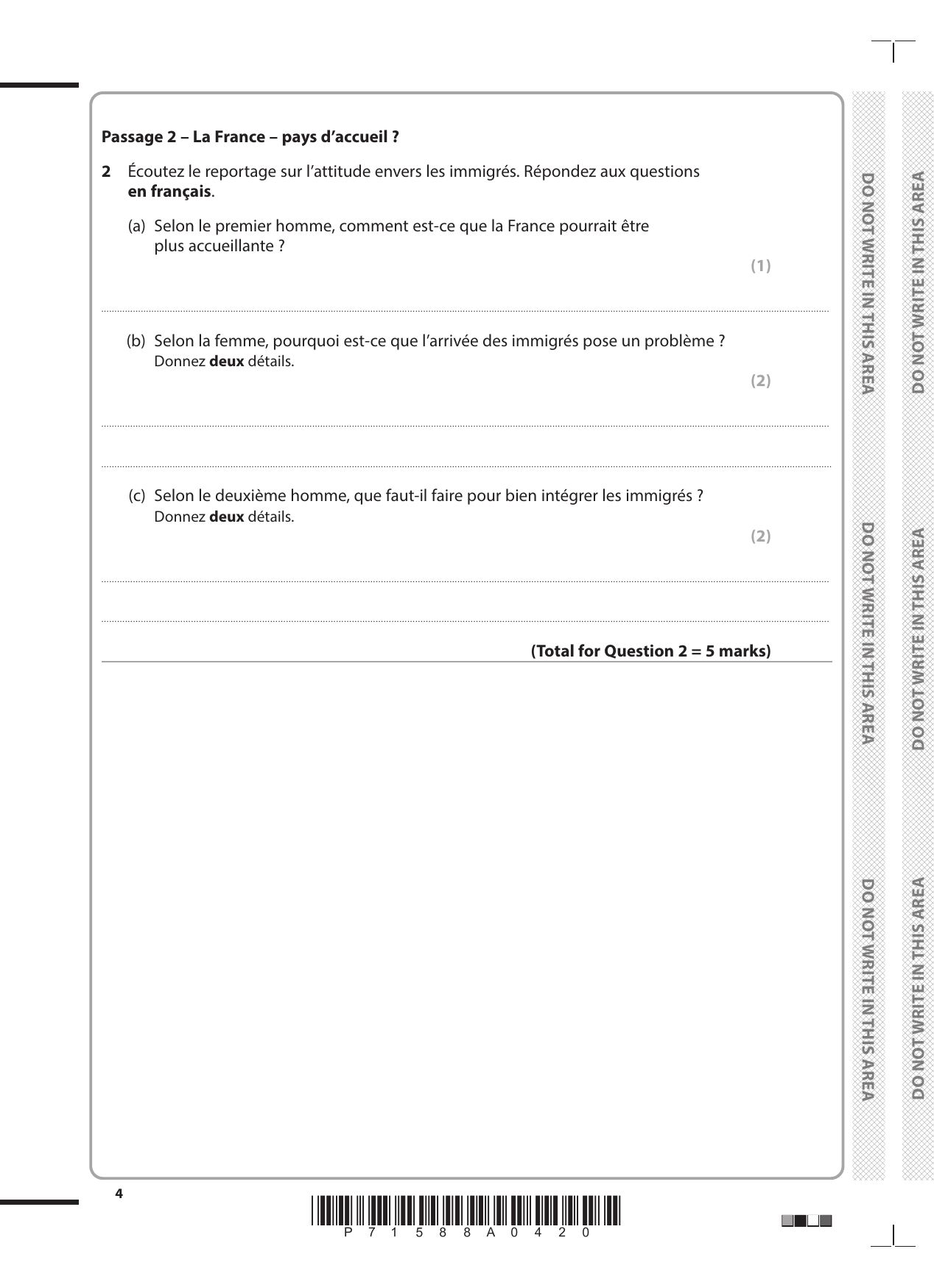 PEARSON EDEXCEL A LEVEL FRENCH QUESTION PAPER 1 2023 (9FR0/01:Listening, Reading and Translation)