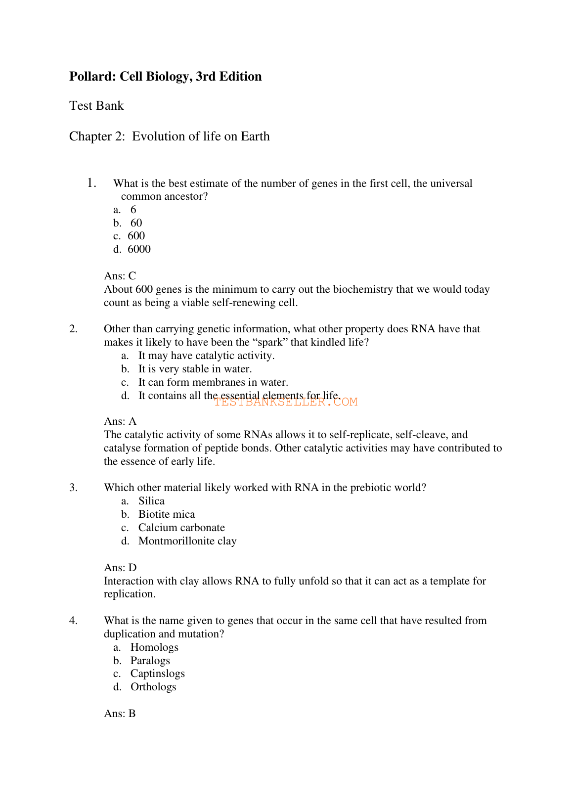 Test Bank For Cell Biology 3rd Edition, Â Cell Biology 3rd Edition,Cell Biology, Â Biology 3rd Edition, Thomas D. Pollard , Graham Johnson, William C. Earnshaw, Jennifer Lippincott-Schwartz,