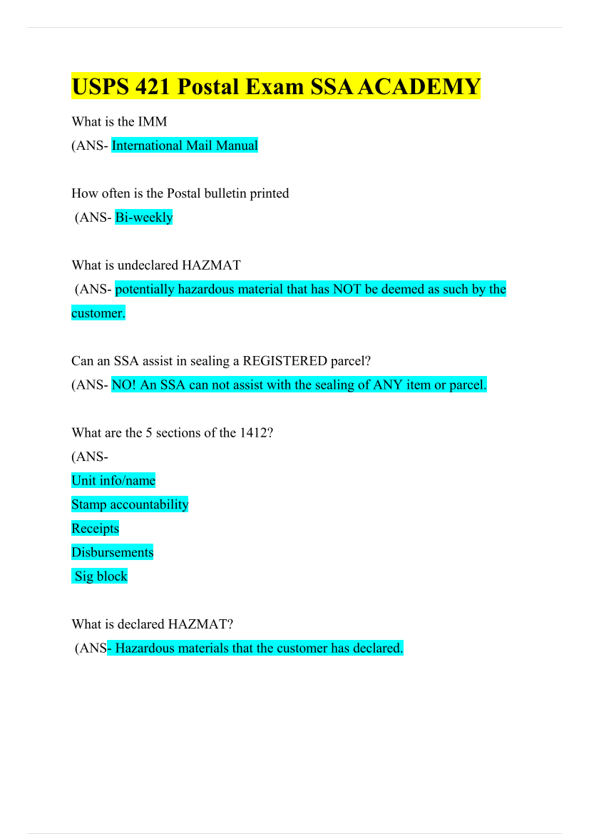 USPS 421 POSTAL EXAM SSA ACADEMY 2024Â