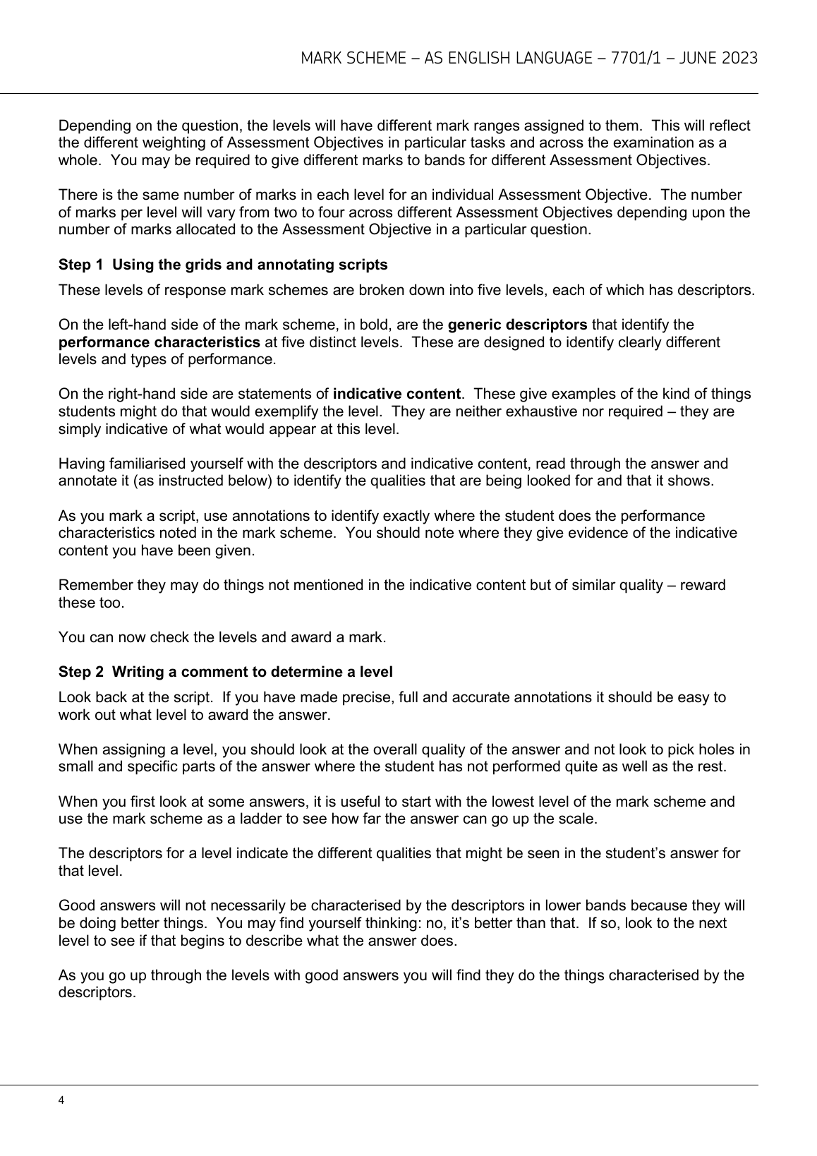 2023 AQA As ENGLISH LANGUAGE MARK SCHEME PAPER 1 [7701/1: Language and the individual]Â