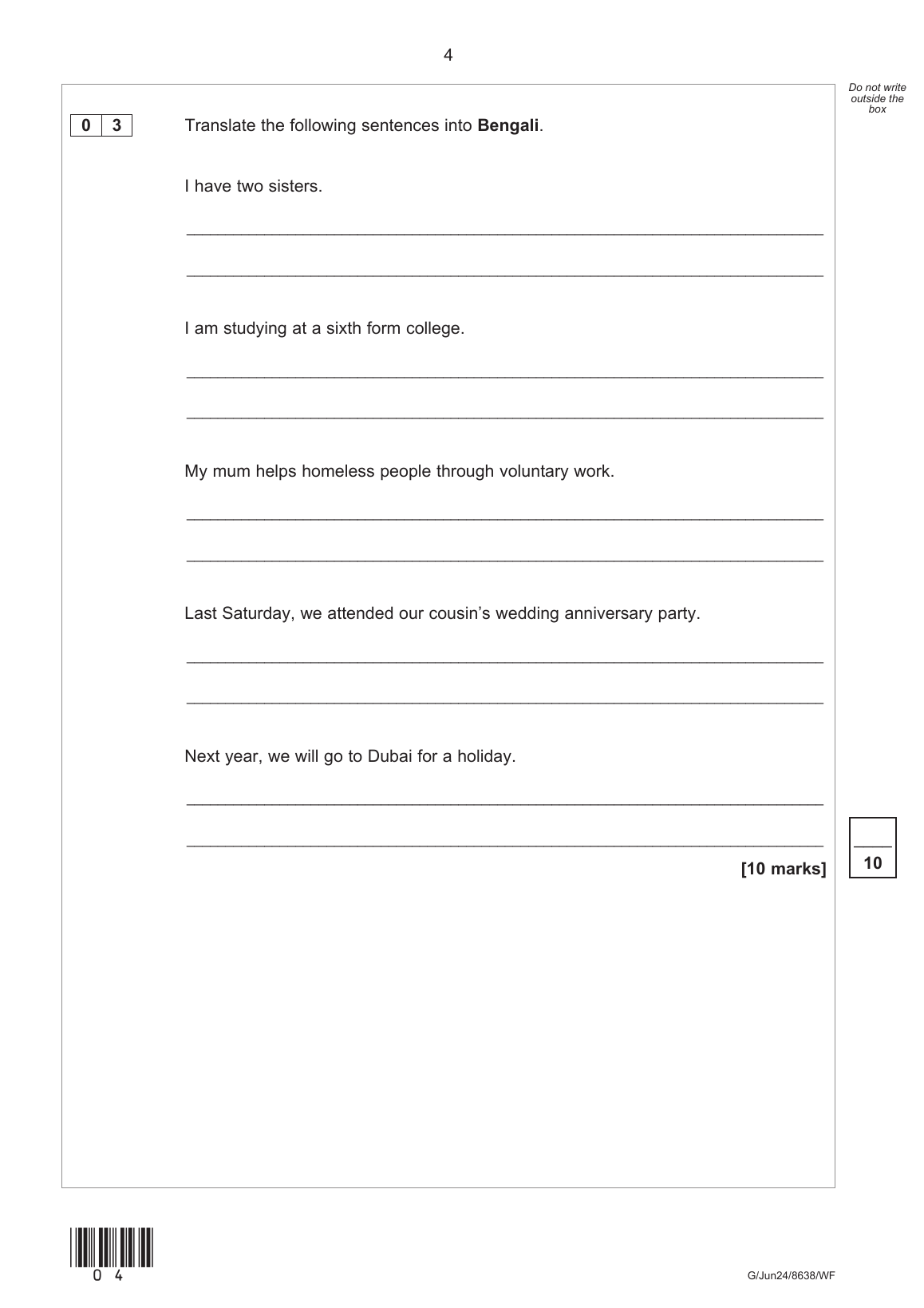 2024 AQA GCSE BENGALI Paper 4 Writing QP(8638/WF:Foundation Tier)