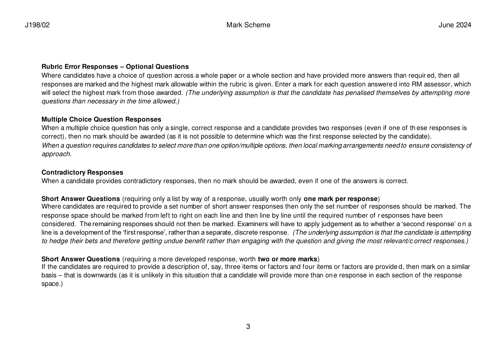 2024 OCR GCSE Ancient History Mark Scheme Paper 2 (J198/02: Rome and its neighbours)