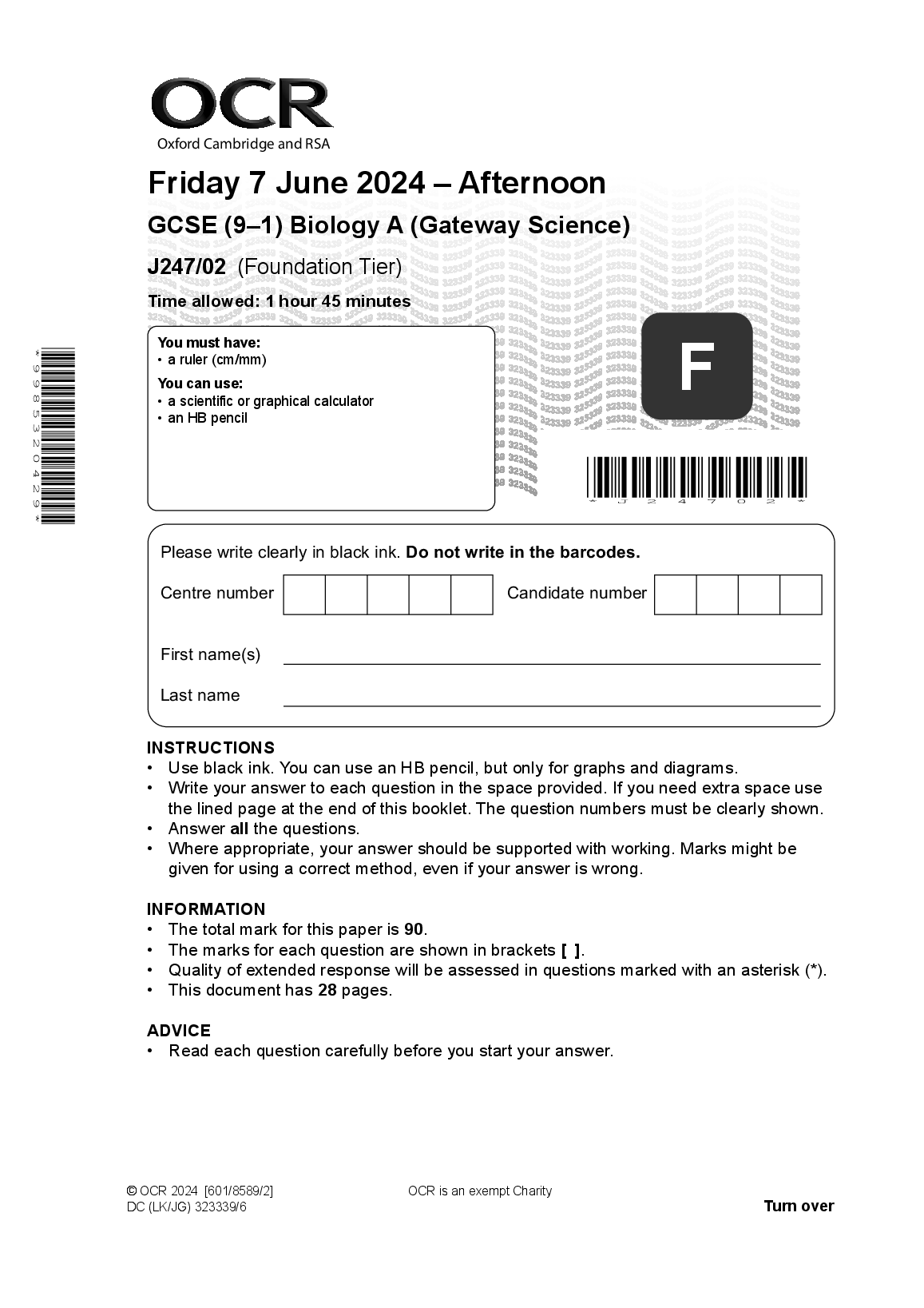 2024 OCR GCSE Biology A Paper 2 (J247/02: Foundation Tier)