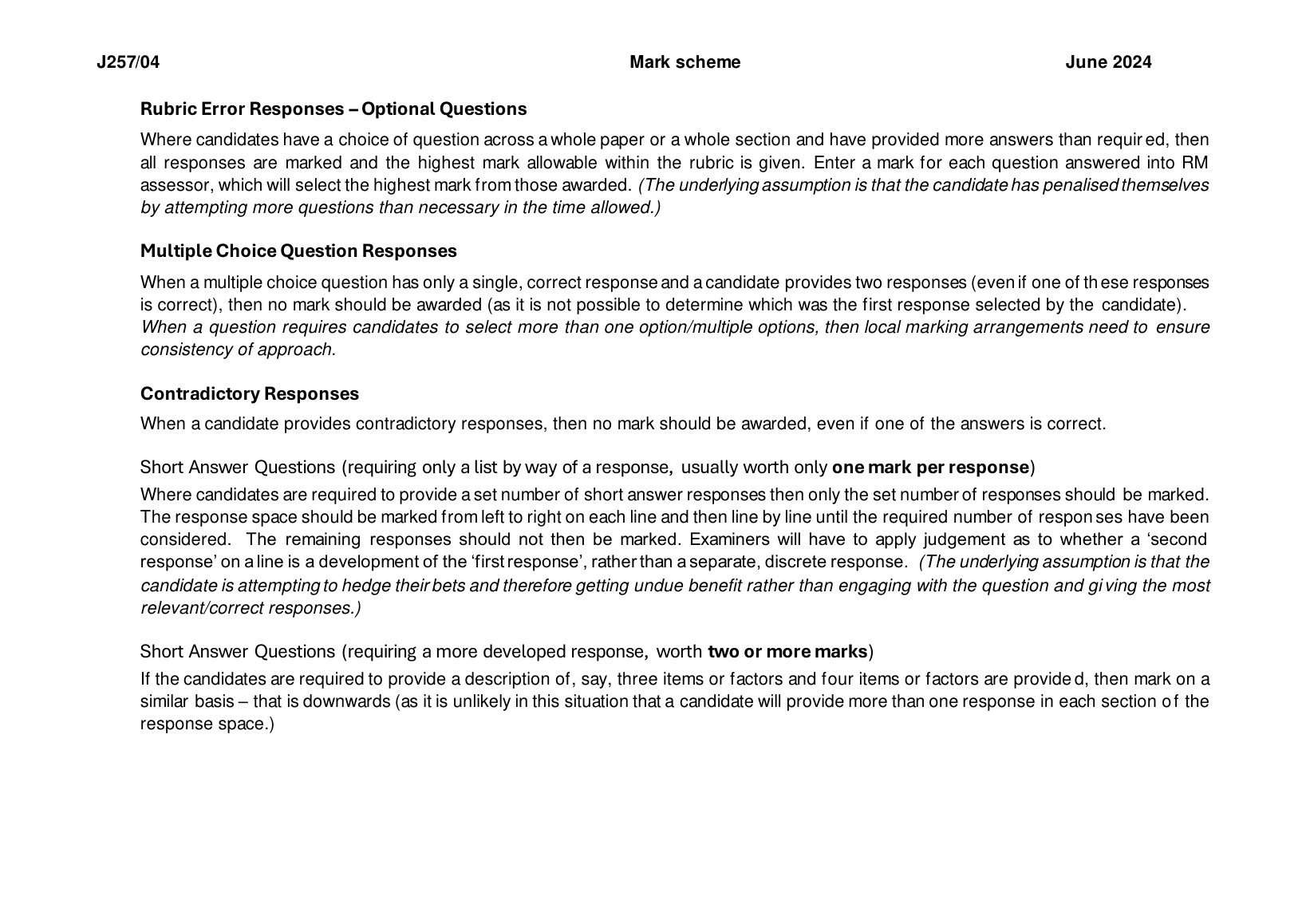 2024 OCR GCSE Biology B Mark Scheme Paper 4 (J257/04: Depth in Biology (Higher Tier))