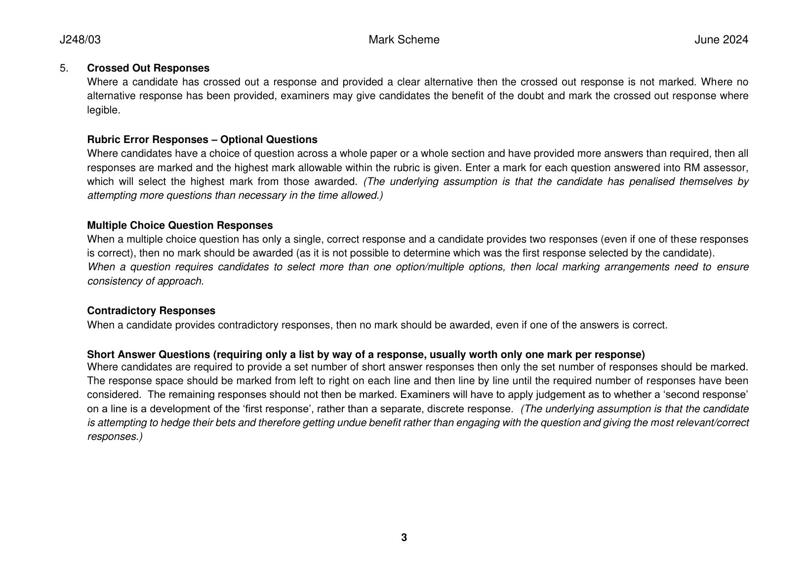 2024 0CR GCSE Chemistry A Mark Scheme Paper 3 (J248/03: Higher Tier)