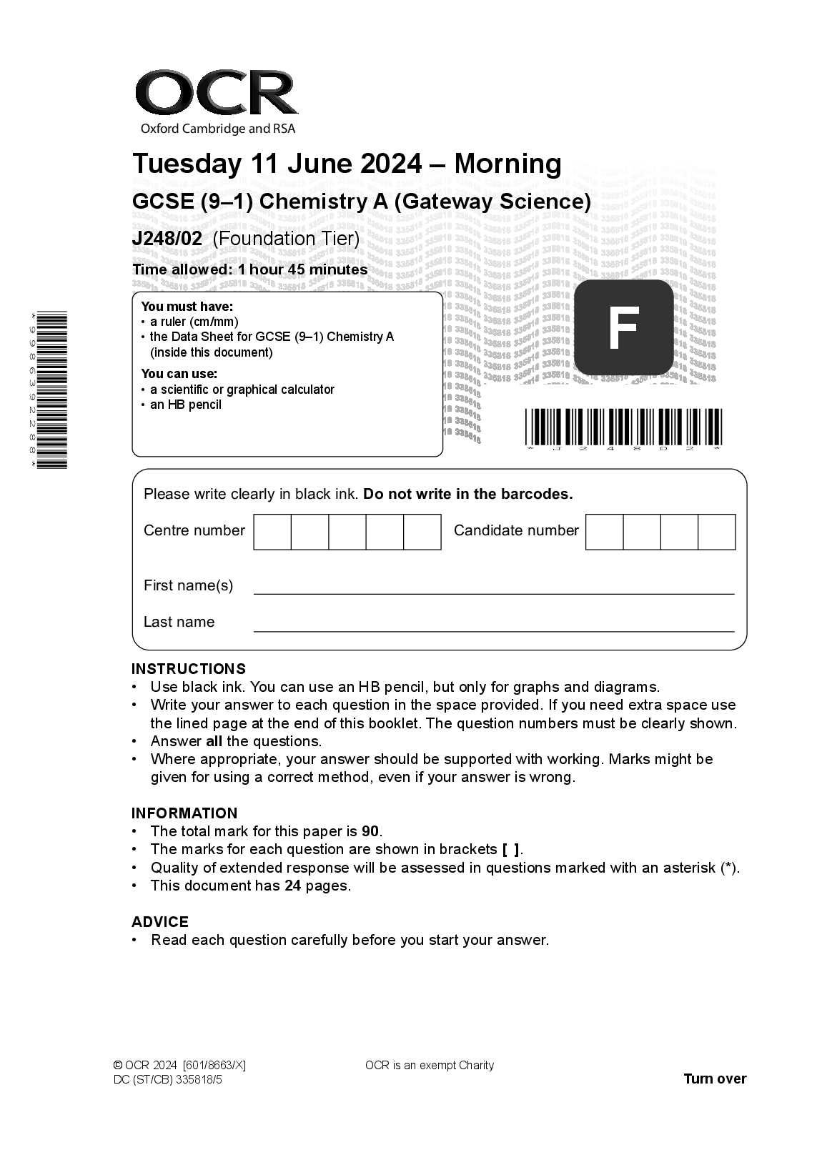 2024 0CR GCSE Chemistry A Paper 2 (J248/02: Foundation Tier) (J248/02: Foundation Tier)