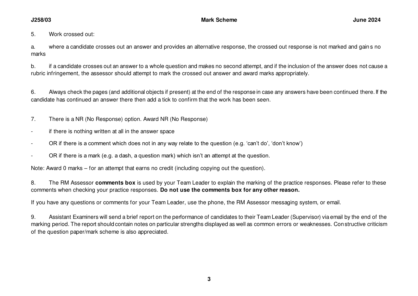2024 0CR GCSE Chemistry B Mark Scheme Paper 3 (J258/03: Breadth in Chemistry Higher Tier)