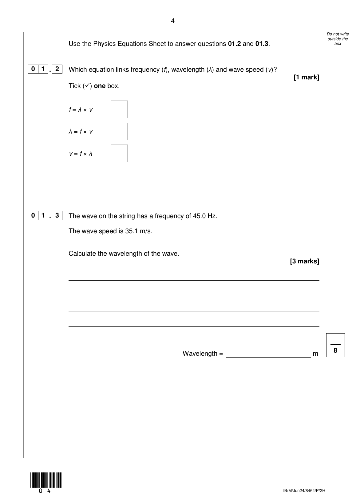 2024 AQA GCSE COMBINED SCIENCE TRILOGY PHYSICS PAPER 2H QP(8464/P/2H:HIGHER TIER)