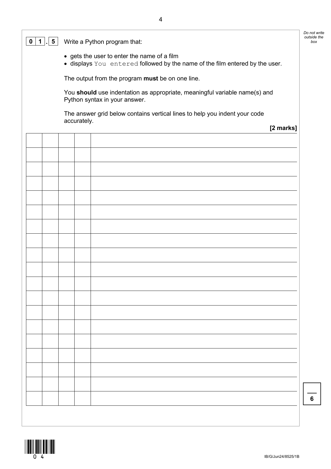 2024 AQA GCSE COMPUTER SCIENCE PAPER 1 QP (8525/1B:Computational thinking and programming skills)