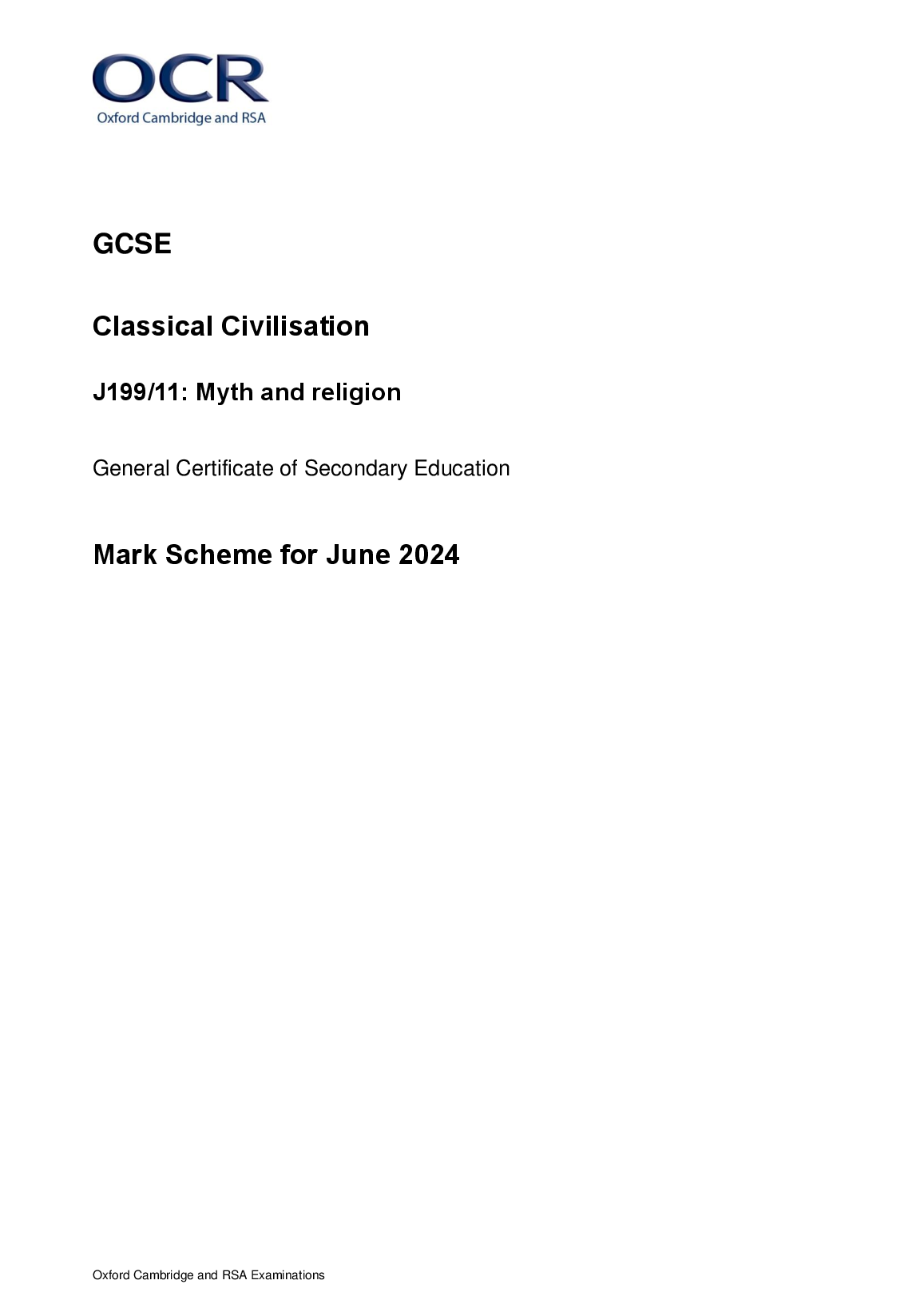 2024 0CR GCSE Classical Civilisation Mark Scheme Paper 1 (J199/11: Myth and religion)