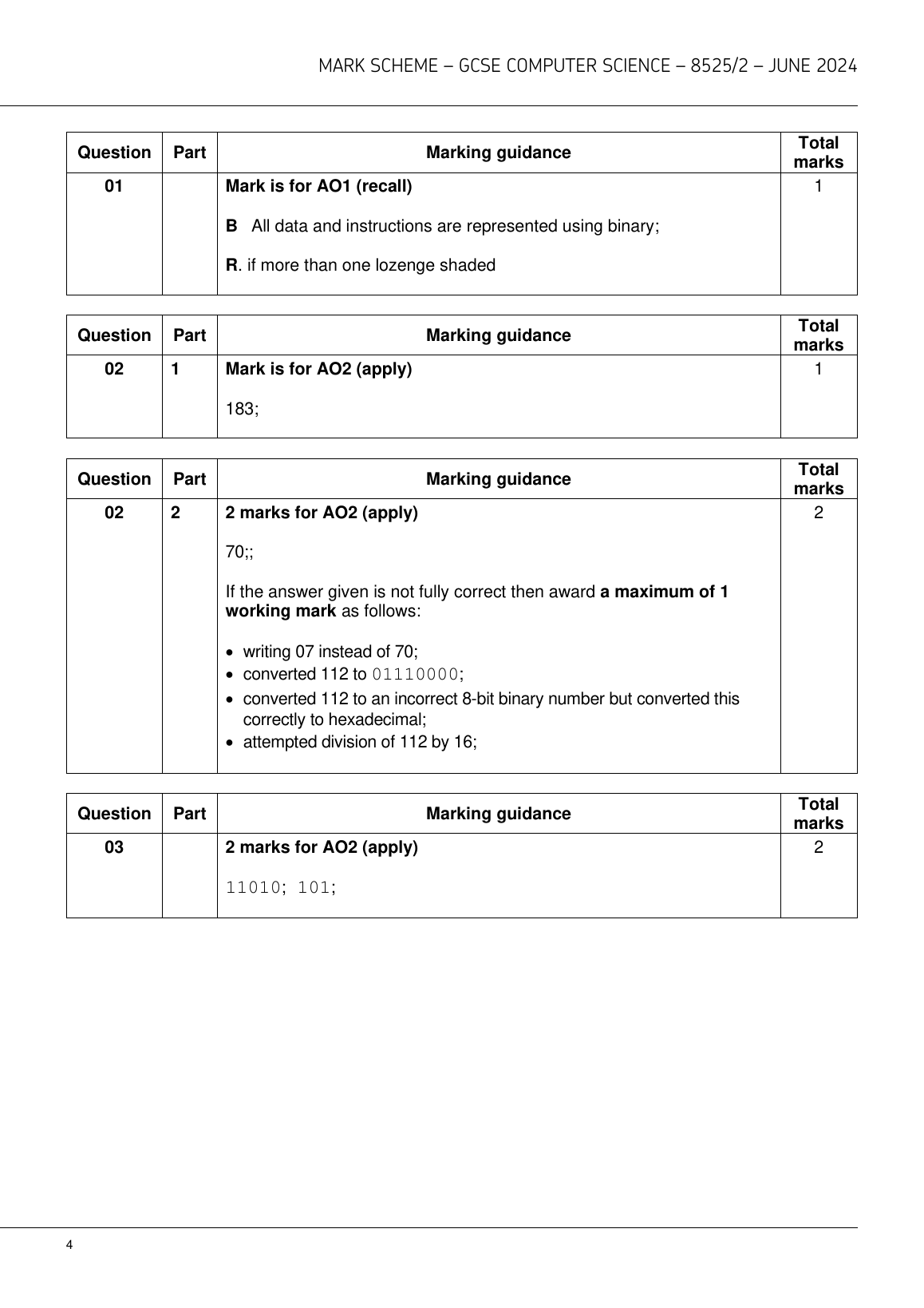 2024 AQA GCSE COMPUTER SCIENCE PAPER 2 mark scheme (8525/2:Computing concepts)