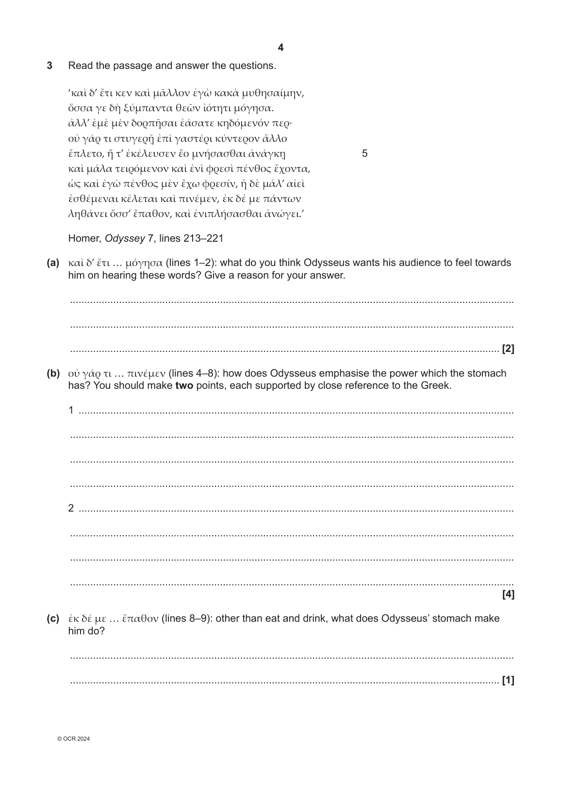 OCR GCSE CLASSICAL GREEK PAPER 4 (J292/04: Verse Literature A )