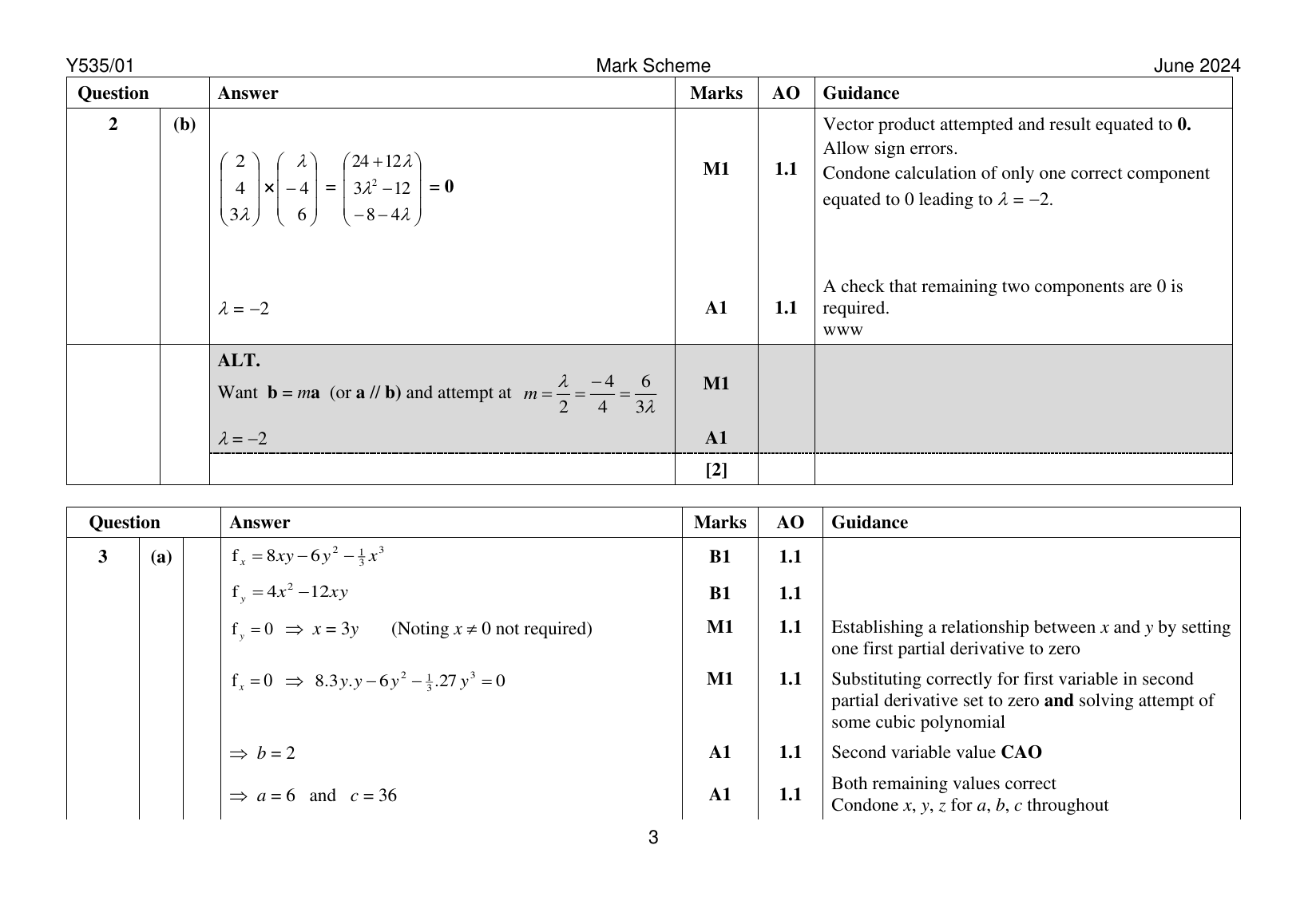OCR AS FURTHER MATHEMATICS A PAPER 1 MARK SCHEME 2024 (Y535/01: Additional pure mathematics)