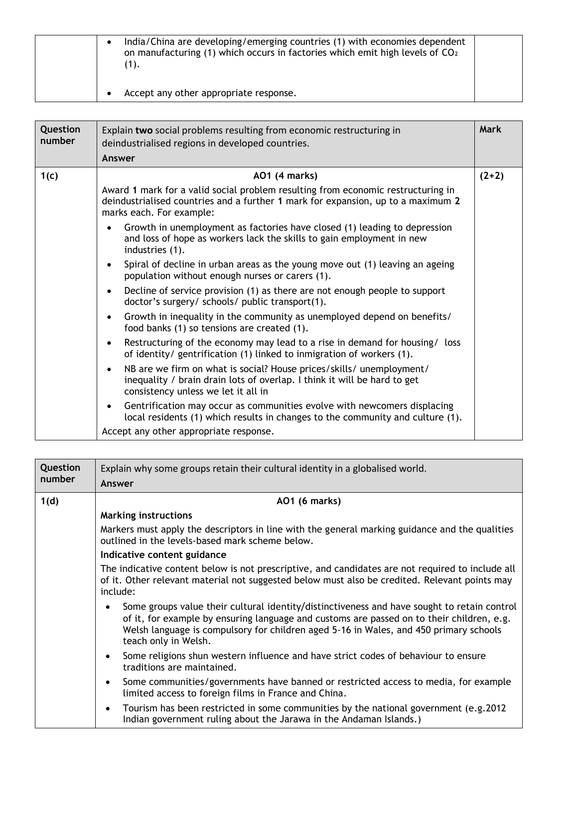 AS LEVEL Geography PAPER 2 MARK SCHEME 2024: Dynamic Places (8GE0/02)