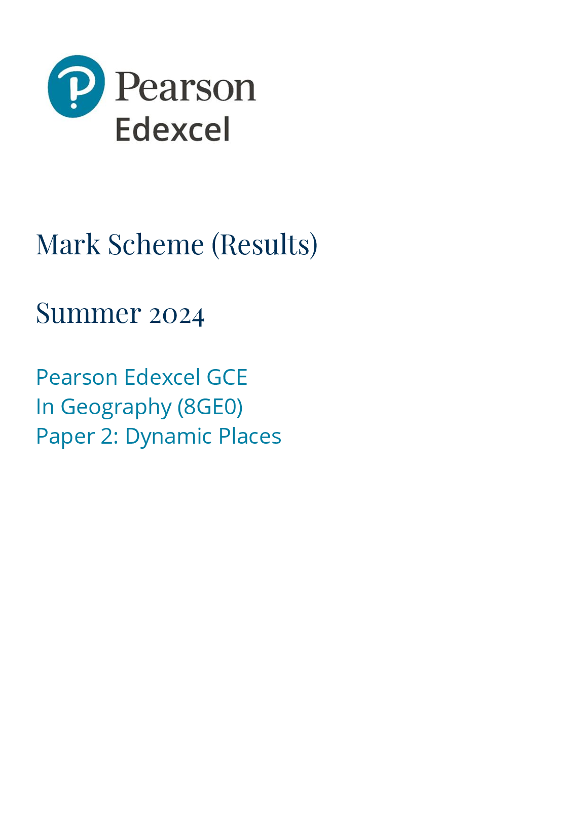 PEARSON EDEXCEL GCE AS LEVEL GeographyPAPER 2 MARK SCHEME 2024: Dynamic Places (8GE0/02)