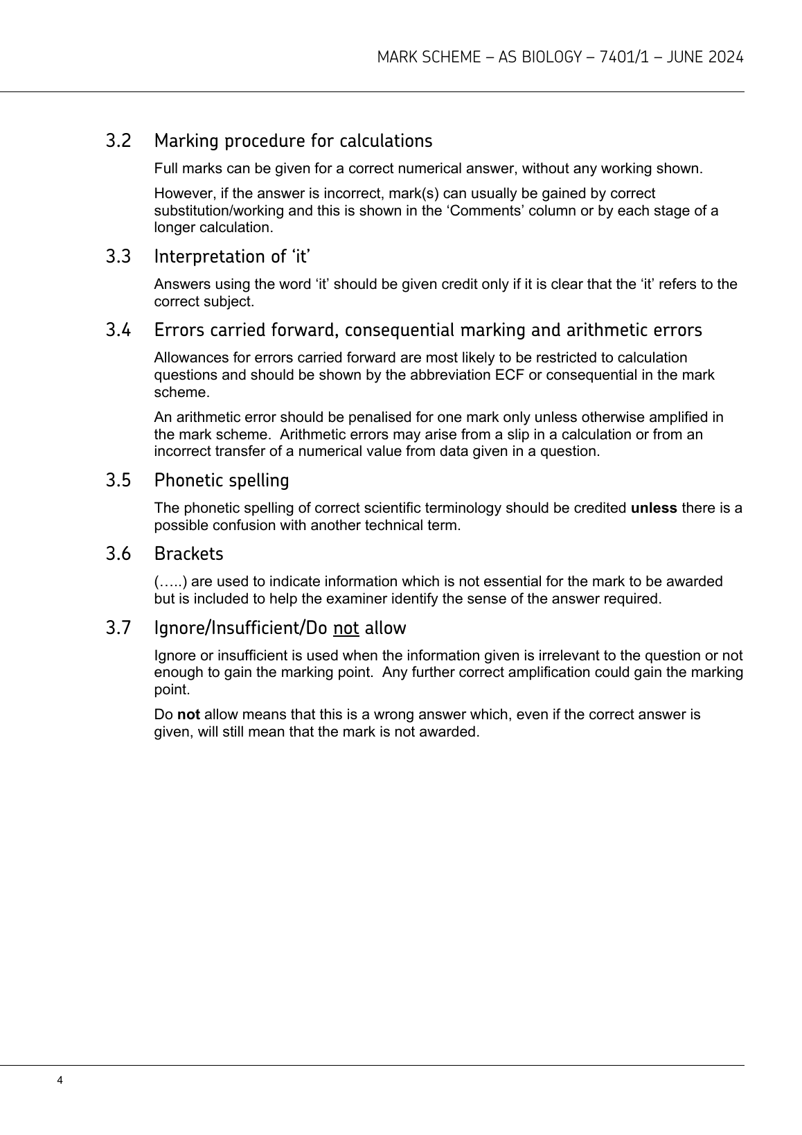 AQA AS BIOLOGY MARK SCHEME PAPER 1 2024 (7401/1)
