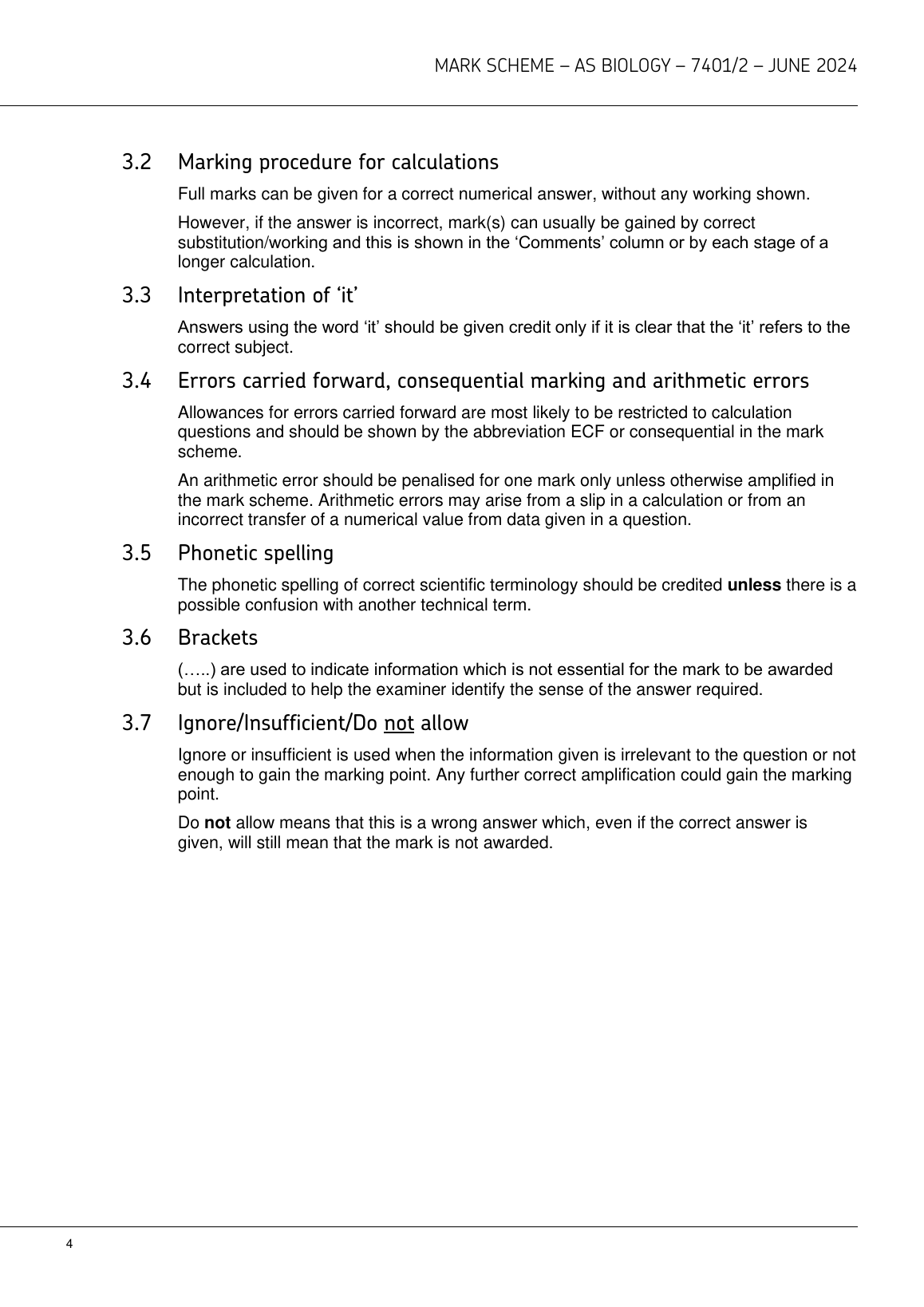 AQA AS BIOLOGY MARK SCHEME PAPER 2 2024 (7401/2)