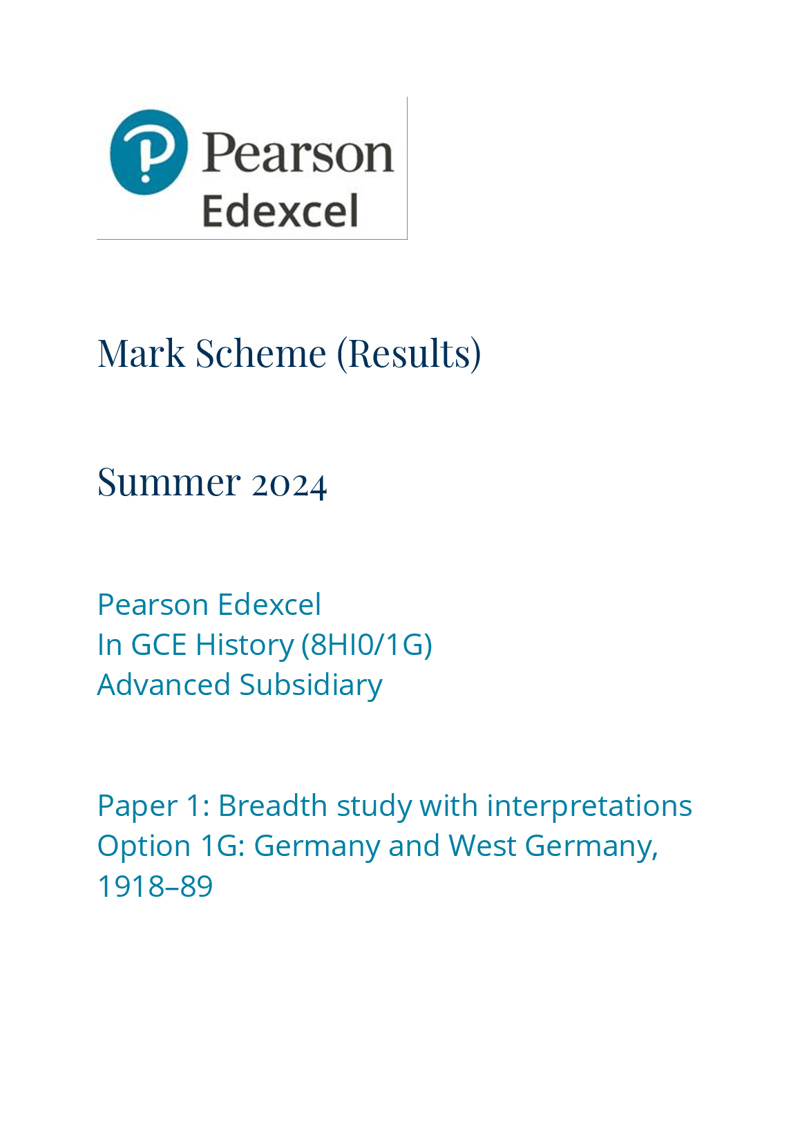 Pearson Edexcel GCE AS Level History PAPER 1 MARK SCHEME 2024 (8HI0/1G)