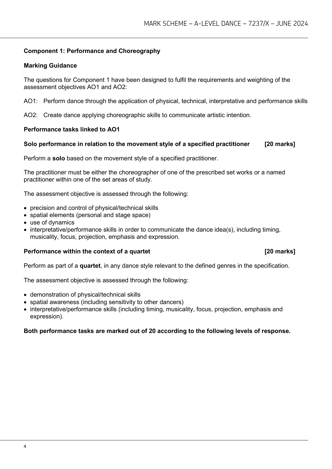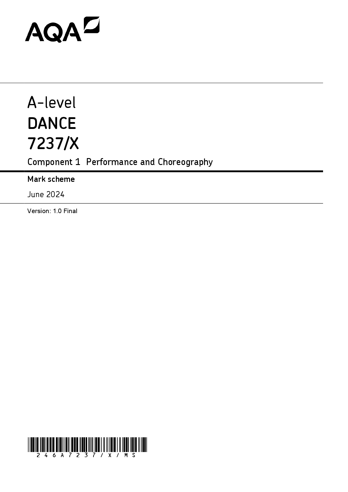 AQA A LEVEL DANCE PAPER 1 MARK SCHEME 2024 (7237/X: Component 1 Performance and Choreography)