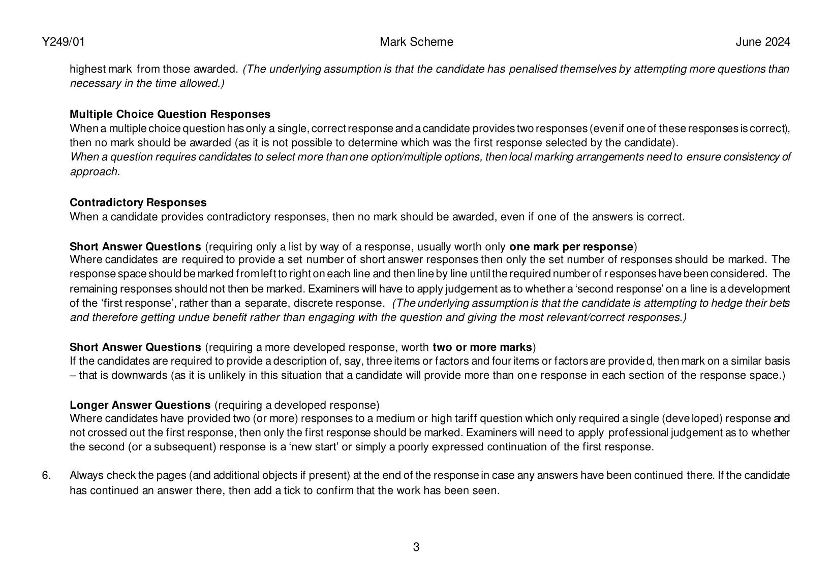 OCR AS HISTORY A PAPER 1 MARK SCHEME 2024 (Y249/01: Non-British period study: Russia 1894-1941)