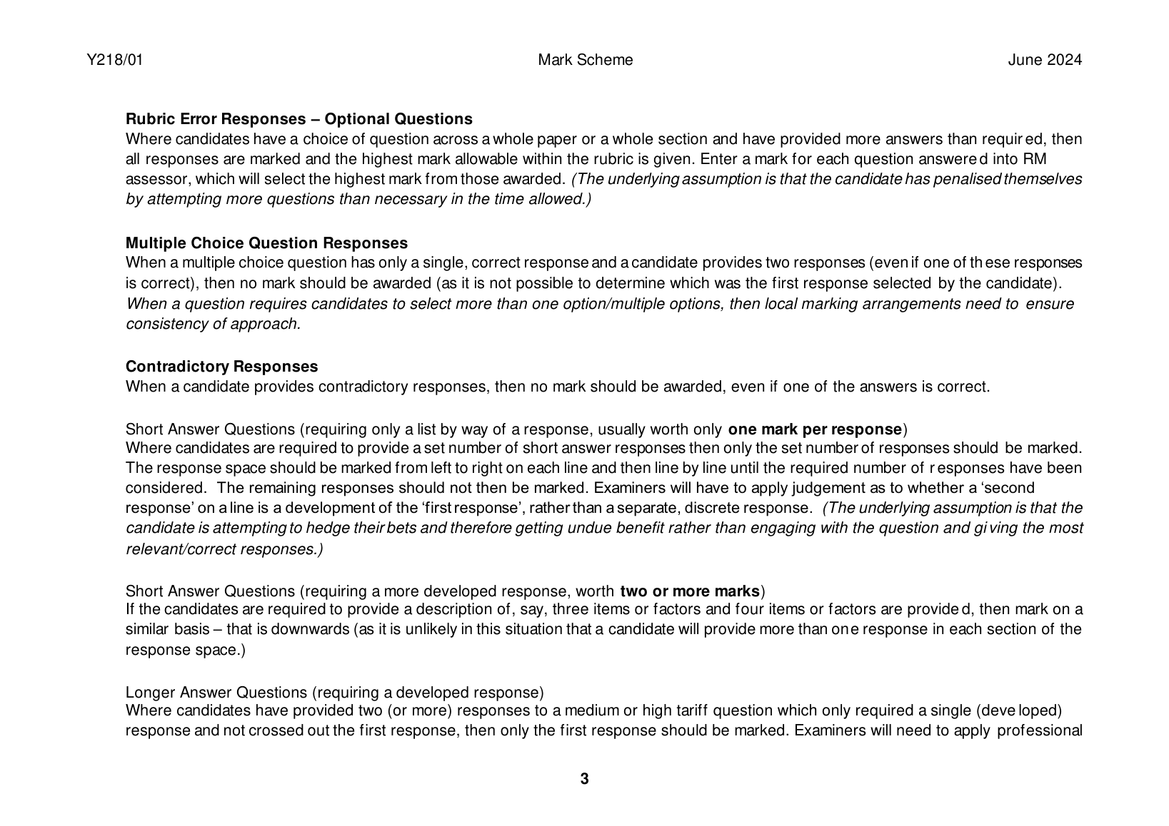 OCR A LEVEL HISTORY A PAPER 1 MARK SCHEME 2024 (Y218/01: International relations 1890-1941)
